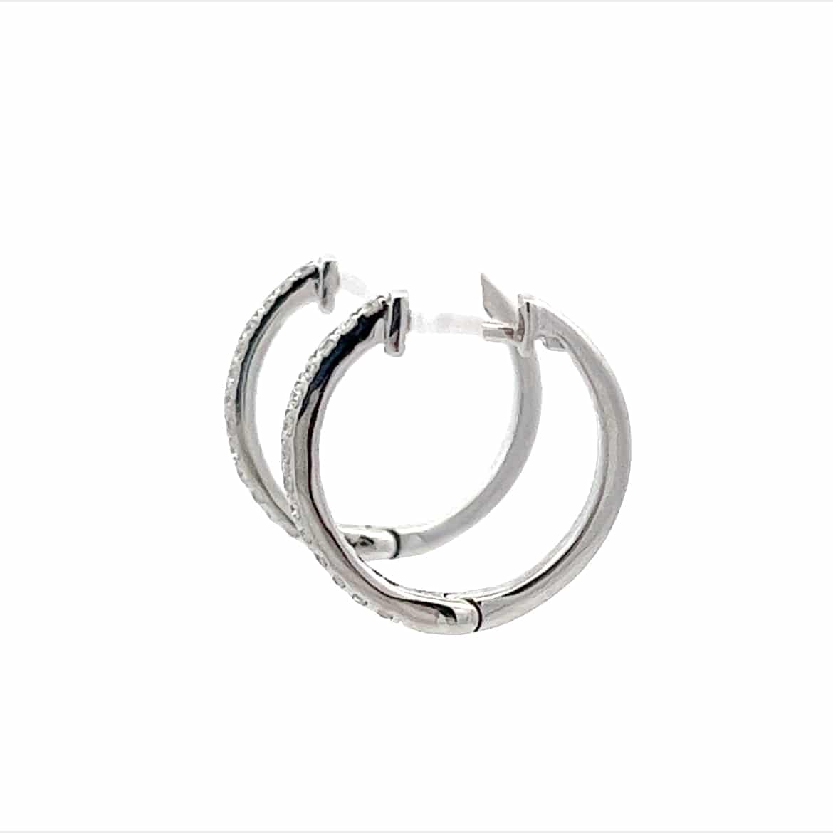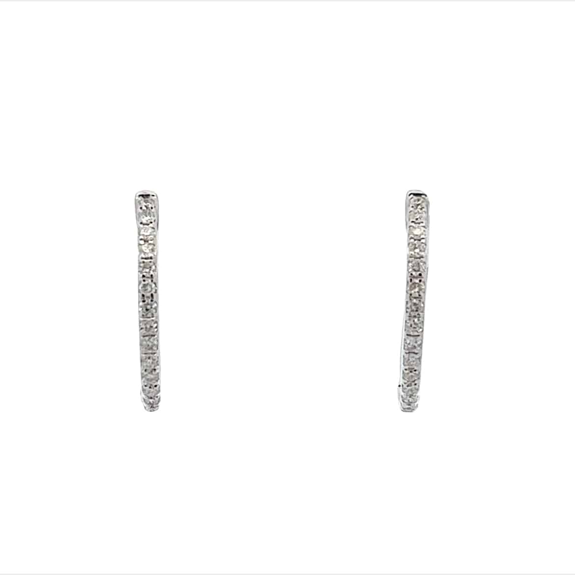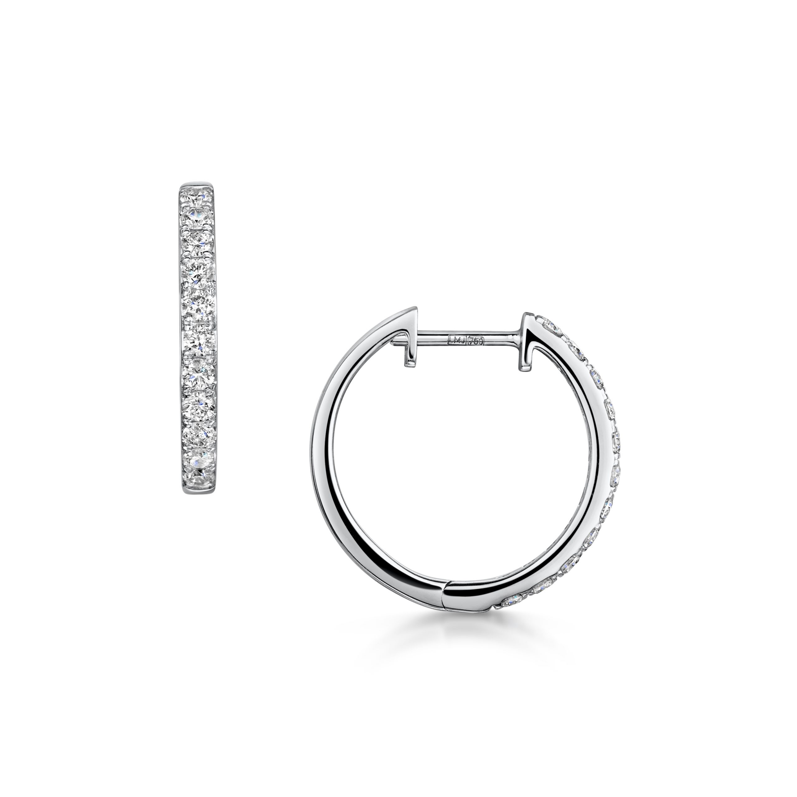 Set with brilliant cut diamonds in micro-claw settings these 9ct white gold hoop earrings are finished with a hinge and post fitting for easy wear.