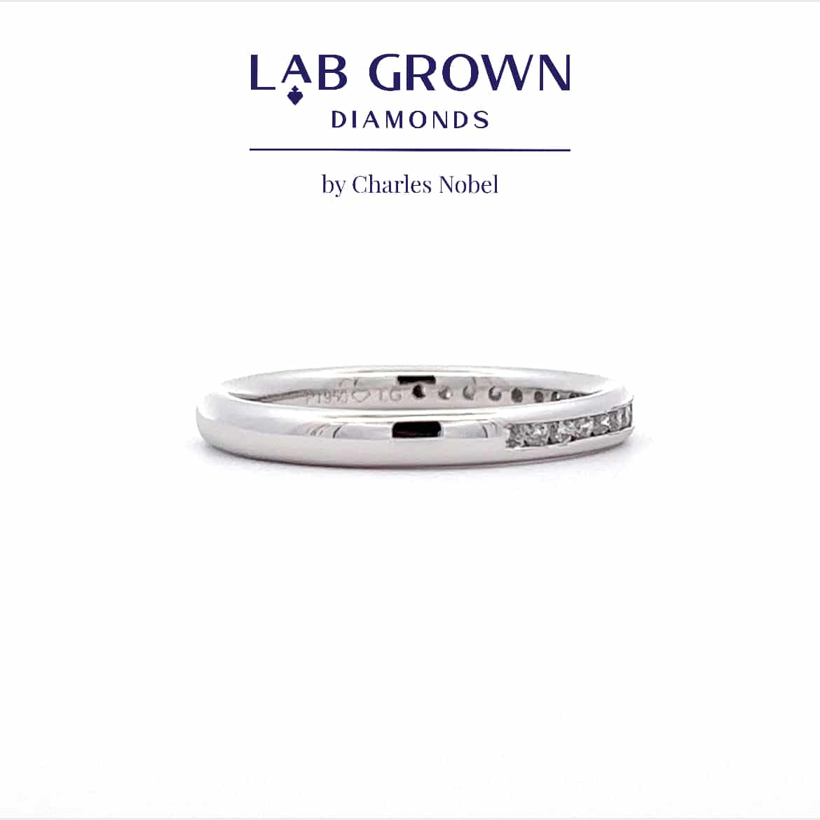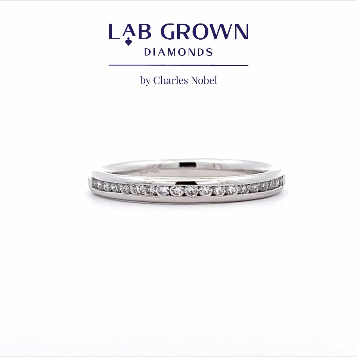 Our 50% channel set diamond eternity and wedding ring has always been a popular choice. Created to sit as low as possible on the finger it is finished with a comfort fit interior.