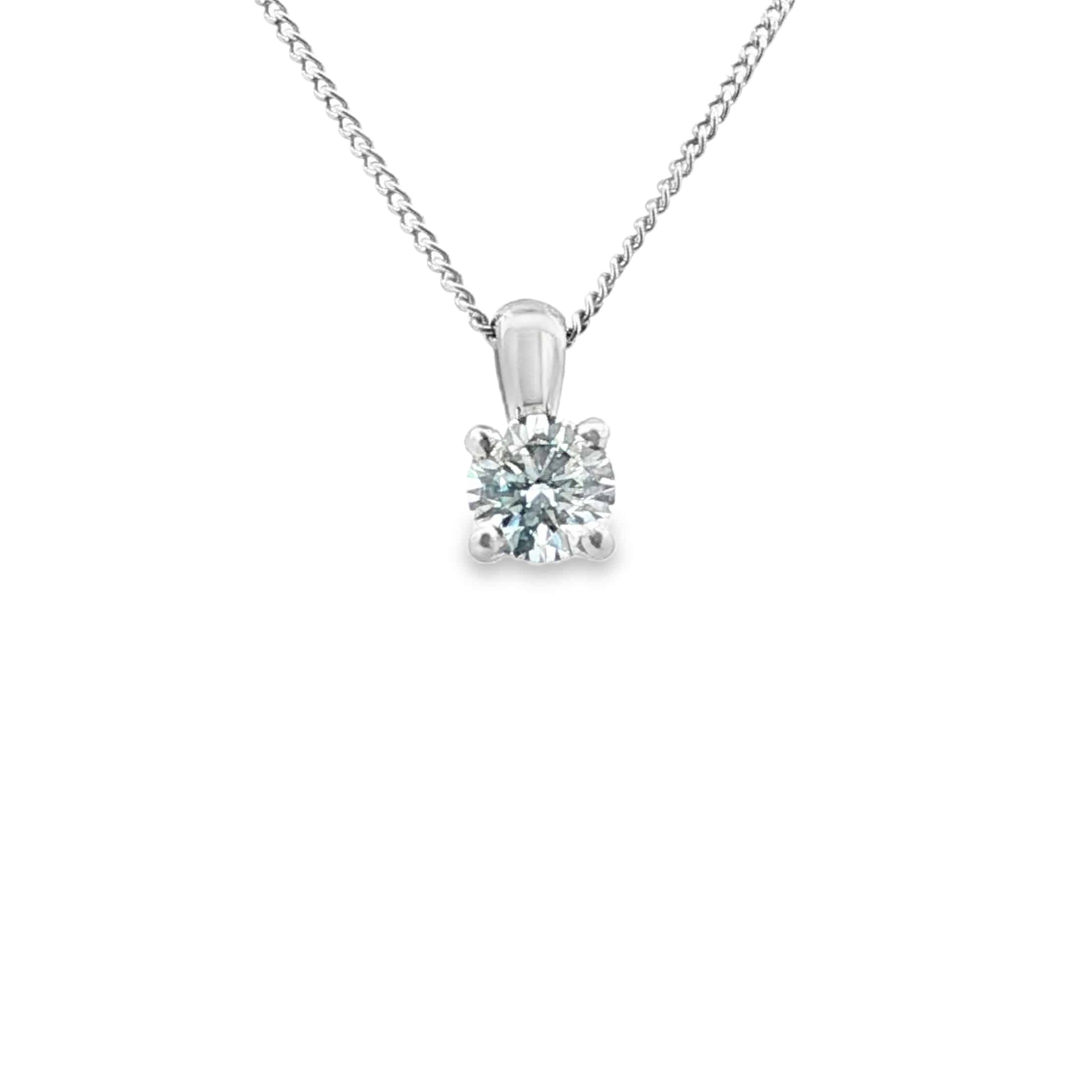 This elegant platinum solitaire pendant showcases a beautifully bright 0.28ct lab grown diamond, chosen for its exceptional sparkle and clarity. Graded D colour, VS1 clarity, and excellent cut, the diamond delivers crisp brilliance and a clean, timeless appearance.