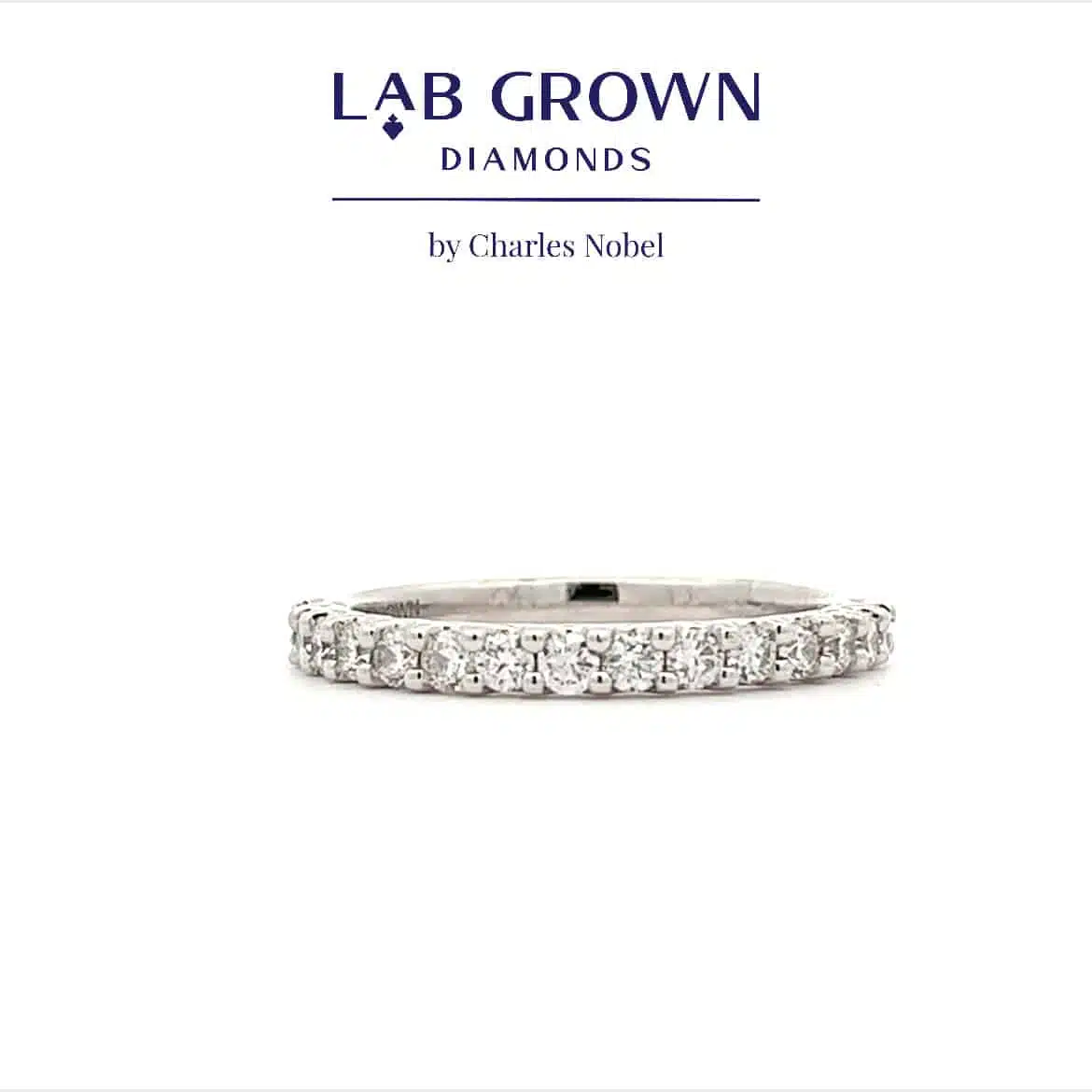 Lab grown brilliant cut diamonds are set in shared four claw scallop shaped setting to create this stunning ring. Each stone is individually claw set in a “D” shaped band with a comfort fit finish and is designed to sit with any of our wedding ring friendly engagement rings.