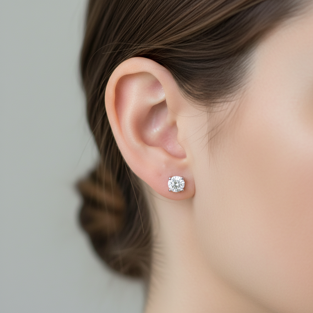 Elegant, refined, and brilliantly timeless, these lab grown diamond stud earrings feature two beautifully matched 0.26ct Ideal Cut round brilliant diamonds, each certified by IGI for authenticity and exceptional quality. Graded D colour and VVS2 clarity, these stones sit at the very top of the diamond scale — offering breathtaking whiteness, purity, and fire.