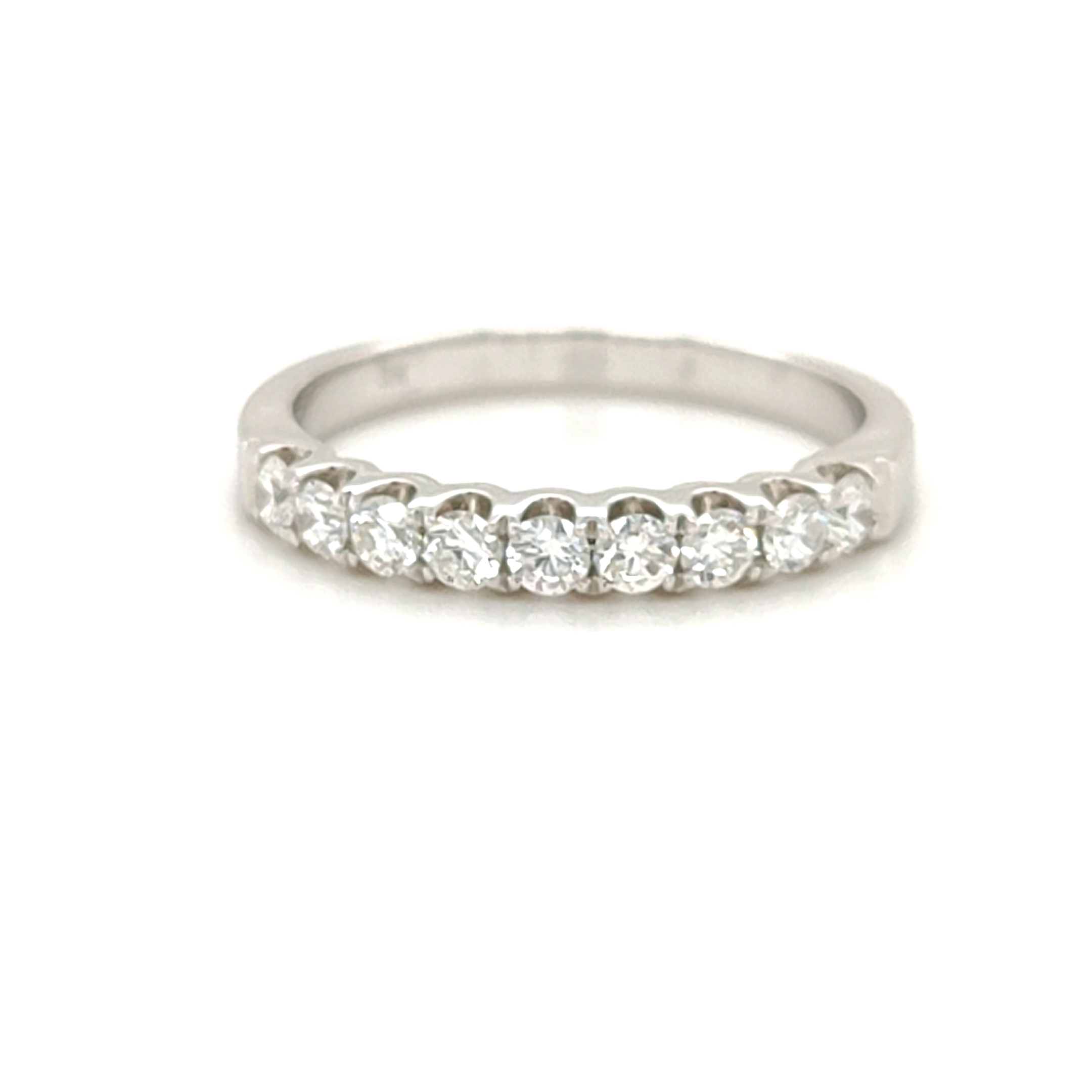 Brilliant cut diamonds have been set in simple four claw settings to create this beautiful diamond half hoop ring, make it an ideal choice as either an engagement or eternity ring.