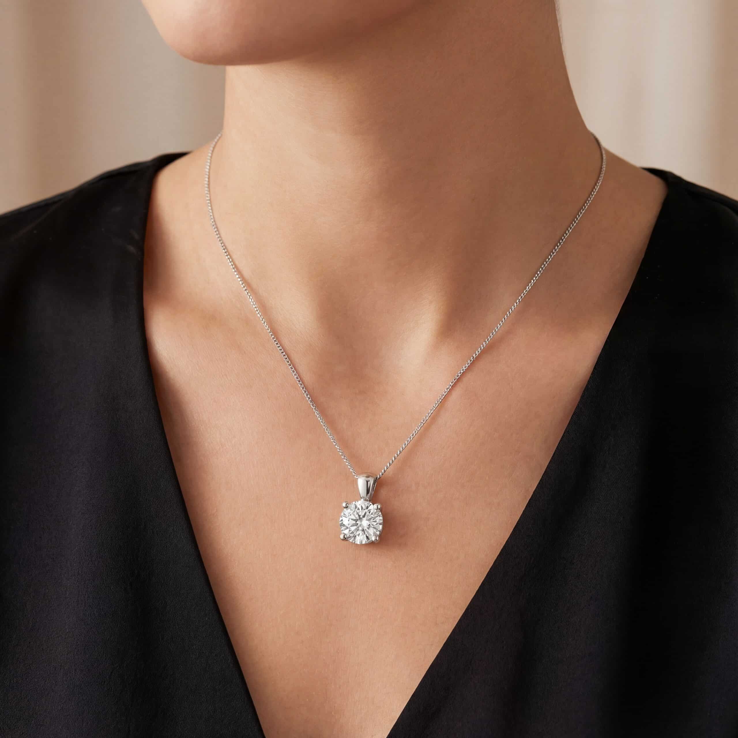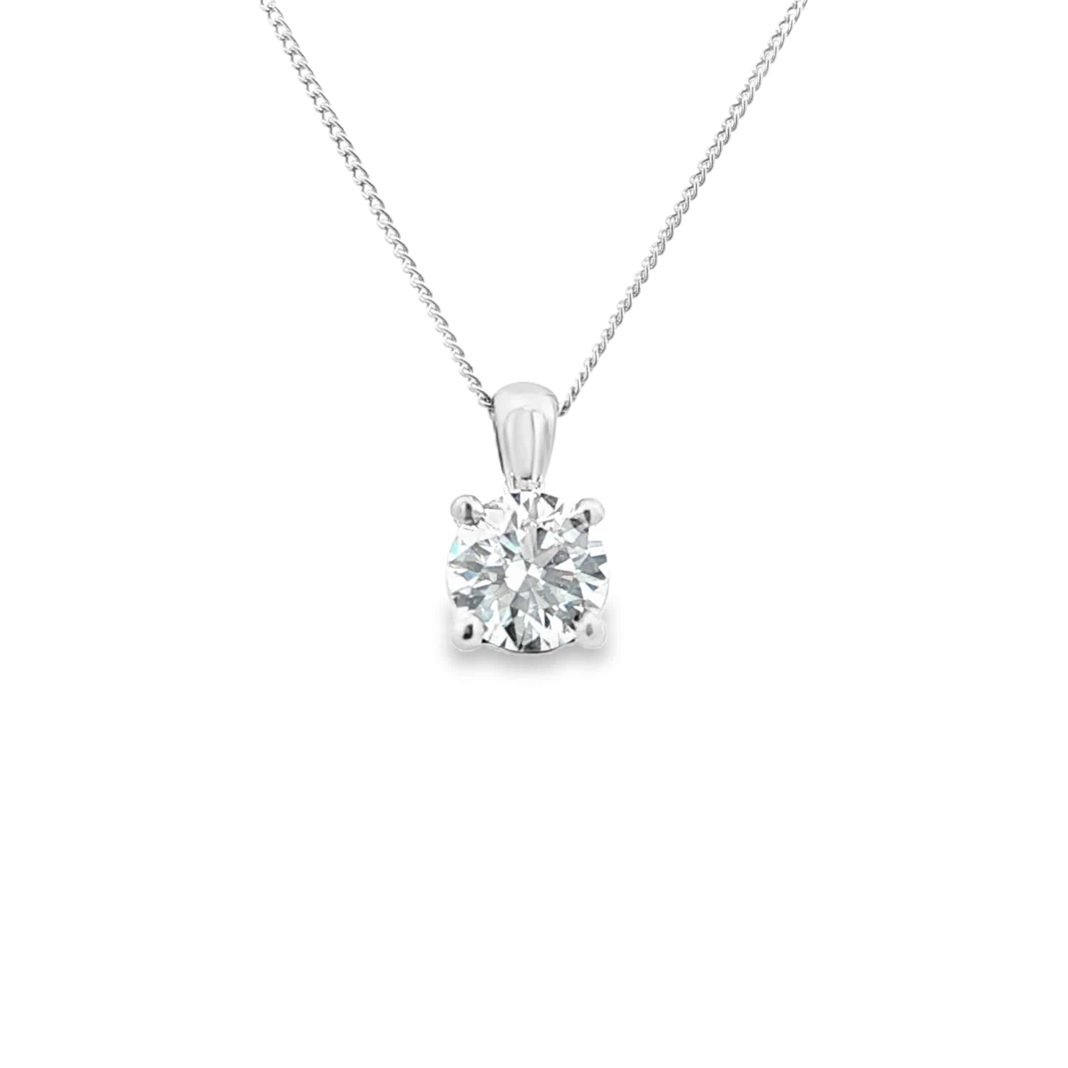 This platinum solitaire pendant showcases a remarkable 1.06ct lab grown diamond, chosen for its exceptional quality and breathtaking brilliance. IGI certificated and graded D colour, VVS2 clarity, and ideal cut, this diamond sits among the finest available—offering incredible sparkle, precision, and purity.