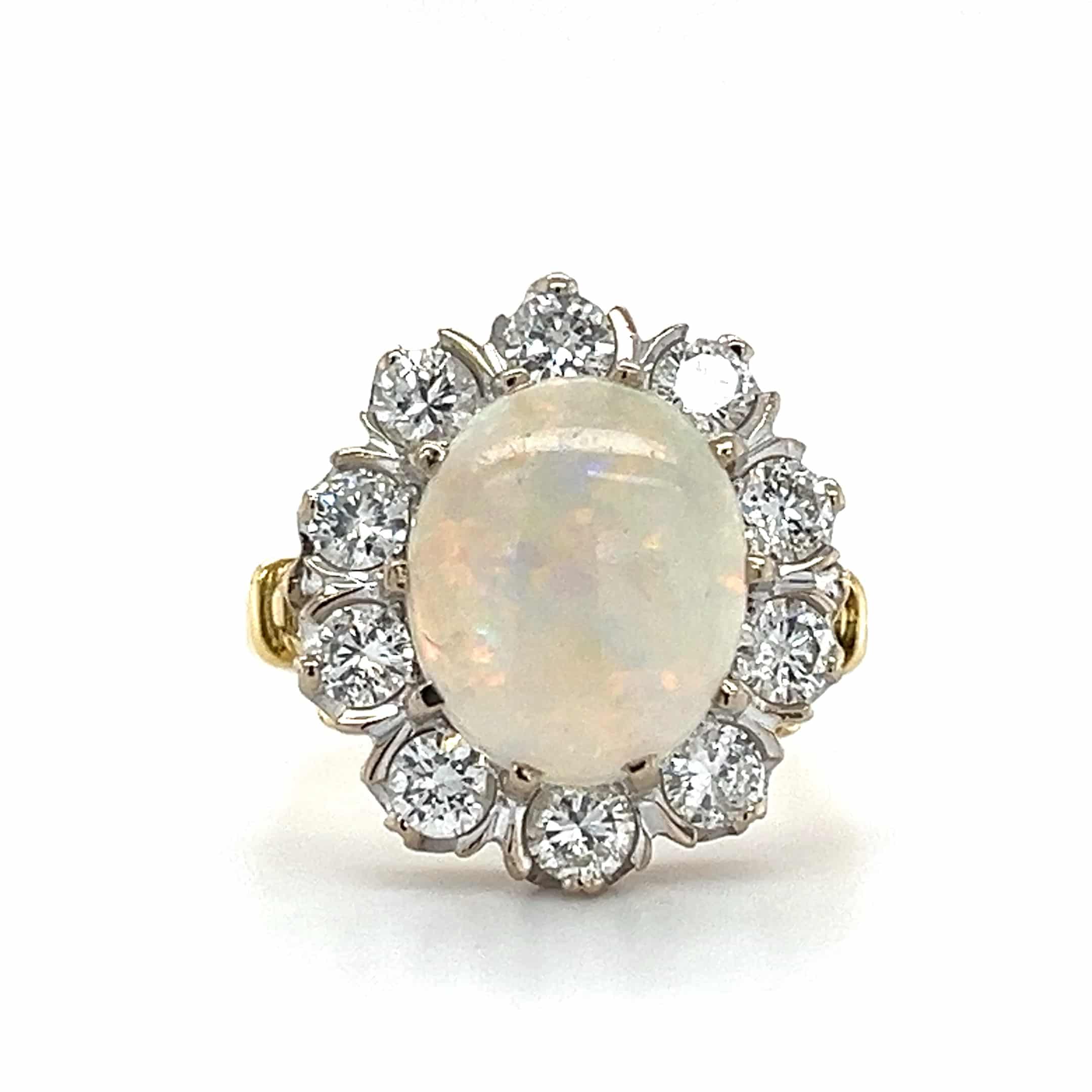 Discover elegance with our pre-loved 18ct Gold Opal and Diamond Ring. This stunning statement piece features an exquisite oval opal surrounded by approximately 1.15ct of sparkling diamonds, all set in luxurious yellow gold. Perfect for adding a touch of sophistication to any outfit.