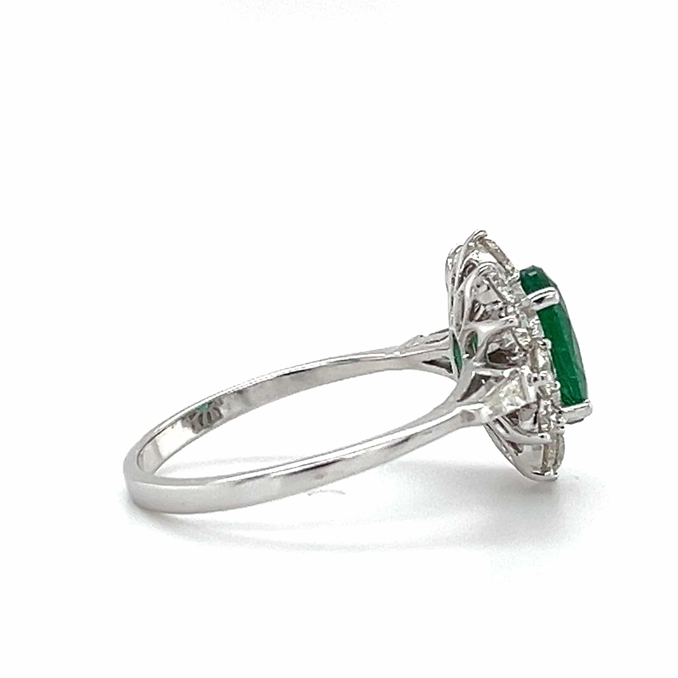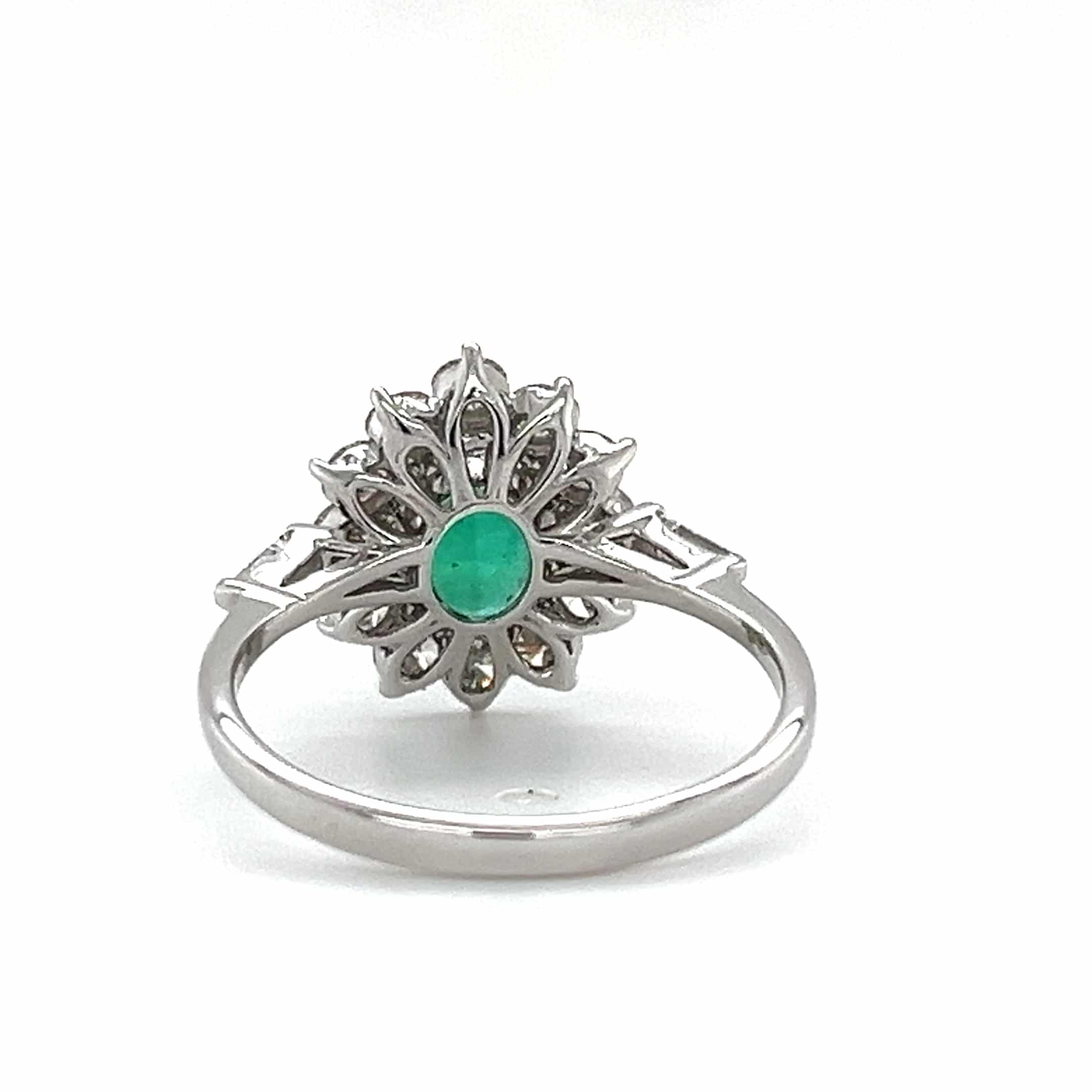 Discover the allure of our 18ct White Gold Emerald and Diamond Cluster Ring, a stunning piece that embodies elegance and luxury.