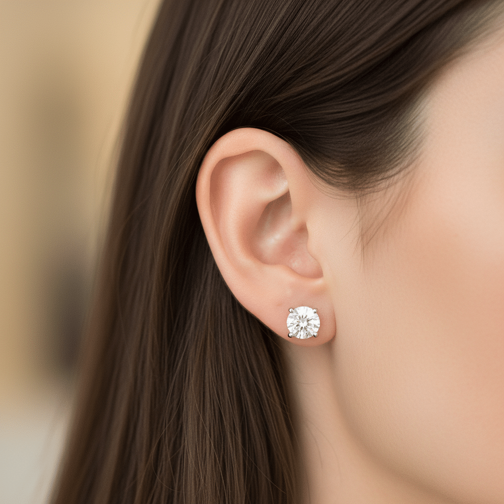 These exceptional lab-grown diamond stud earrings offer unrivalled brilliance and purity. Each earring is set with a D colour, VVS2 clarity Ideal Cut lab-grown diamond — among the rarest and most desirable combinations available. With a total weight of 2.04 carats, the stones display breathtaking fire, precision, and light return.