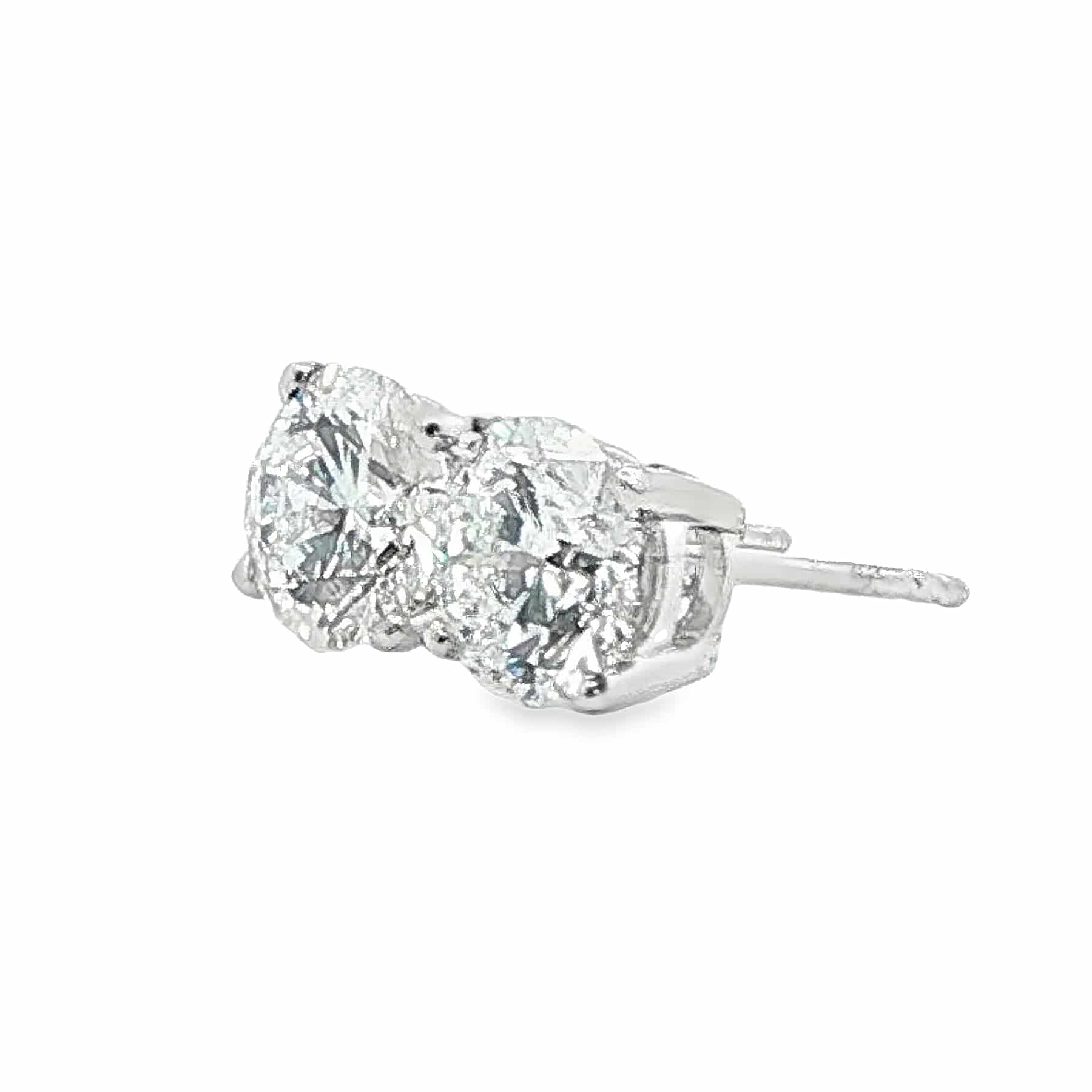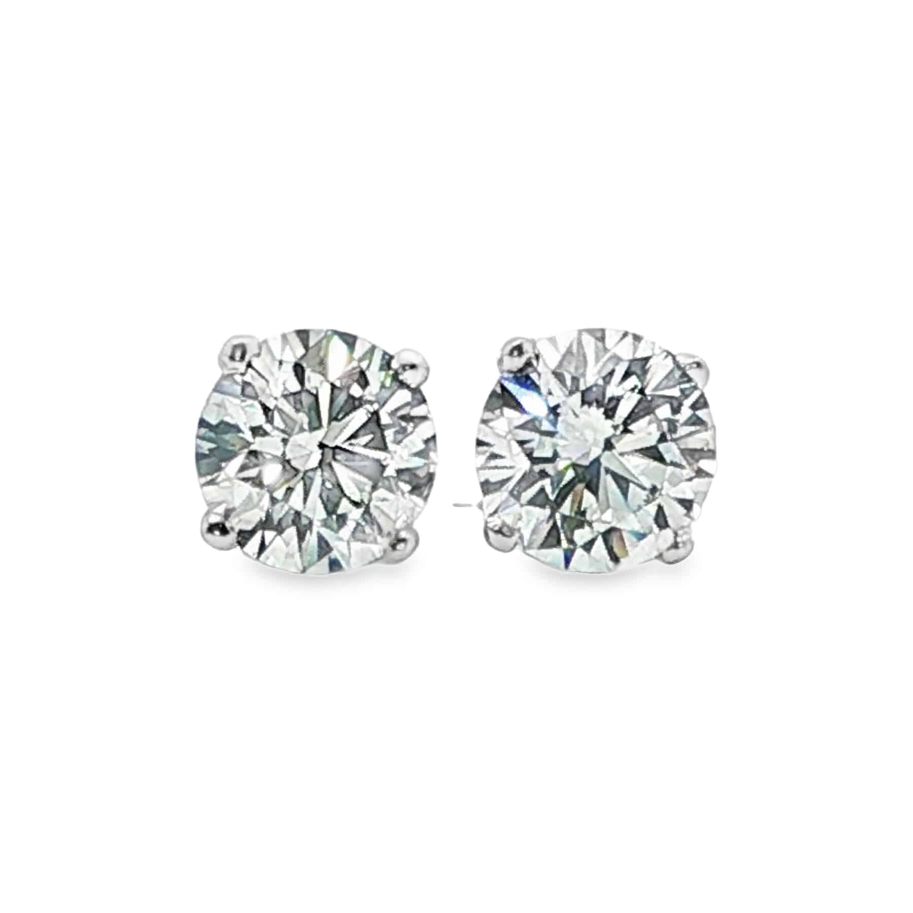 These classic lab grown diamond stud earrings feature a matched pair of brilliant cut diamonds, each weighing 1.03ct, for a total carat weight of 2.06ct. Graded D colour and VS1 clarity, the diamonds display exceptional brightness and fire, enhanced by their ideal cut proportions.