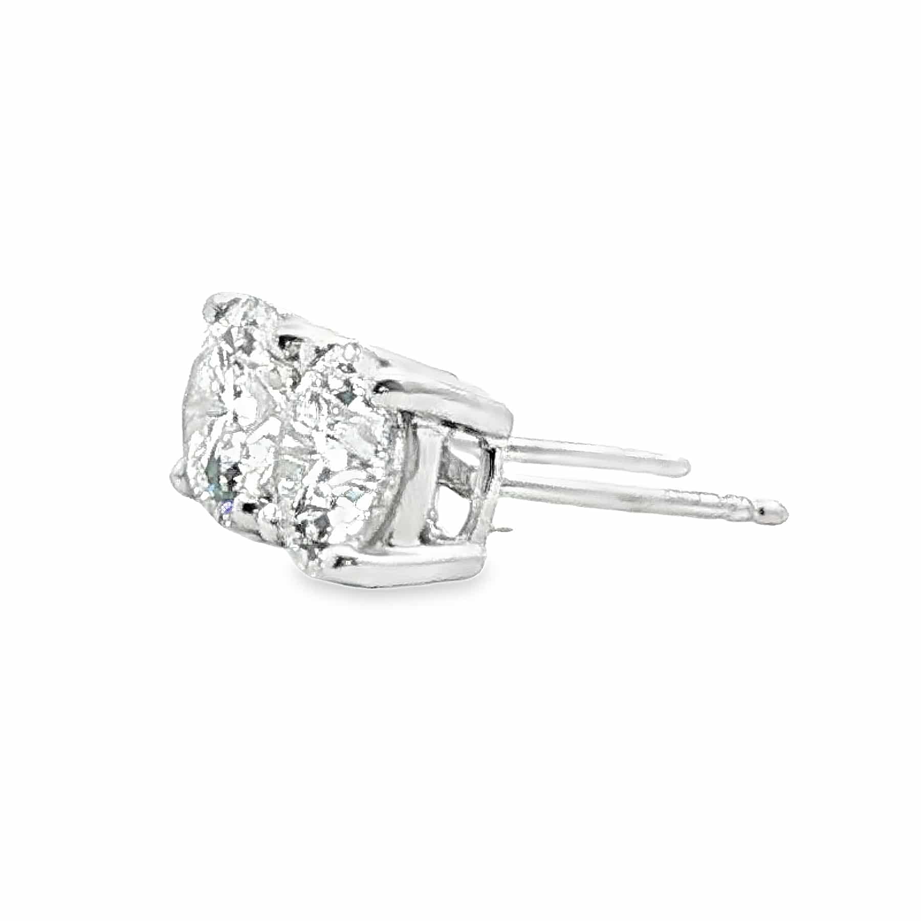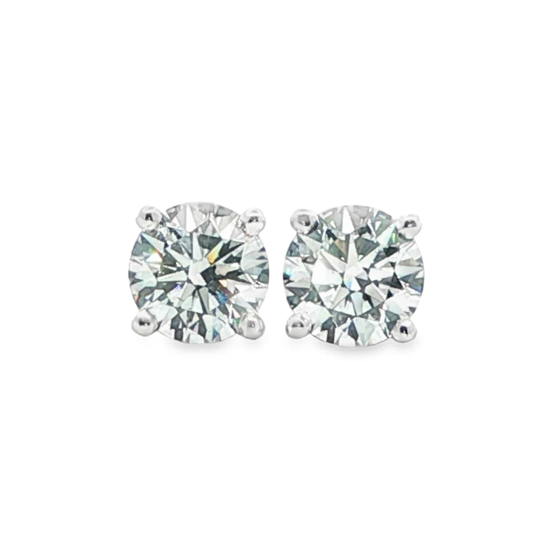 A refined pair of lab grown diamond stud earrings, showcasing two brilliant cut diamonds with a combined total weight of 2.44ct. Each earring is set with a 1.22ct D colour, VS2 clarity diamond, graded Ideal cut and independently certified by IGI. Crafted in classic 9ct white gold four-claw settings, these elegant studs offer exceptional brilliance and timeless appeal, suitable for everyday wear or special occasions.