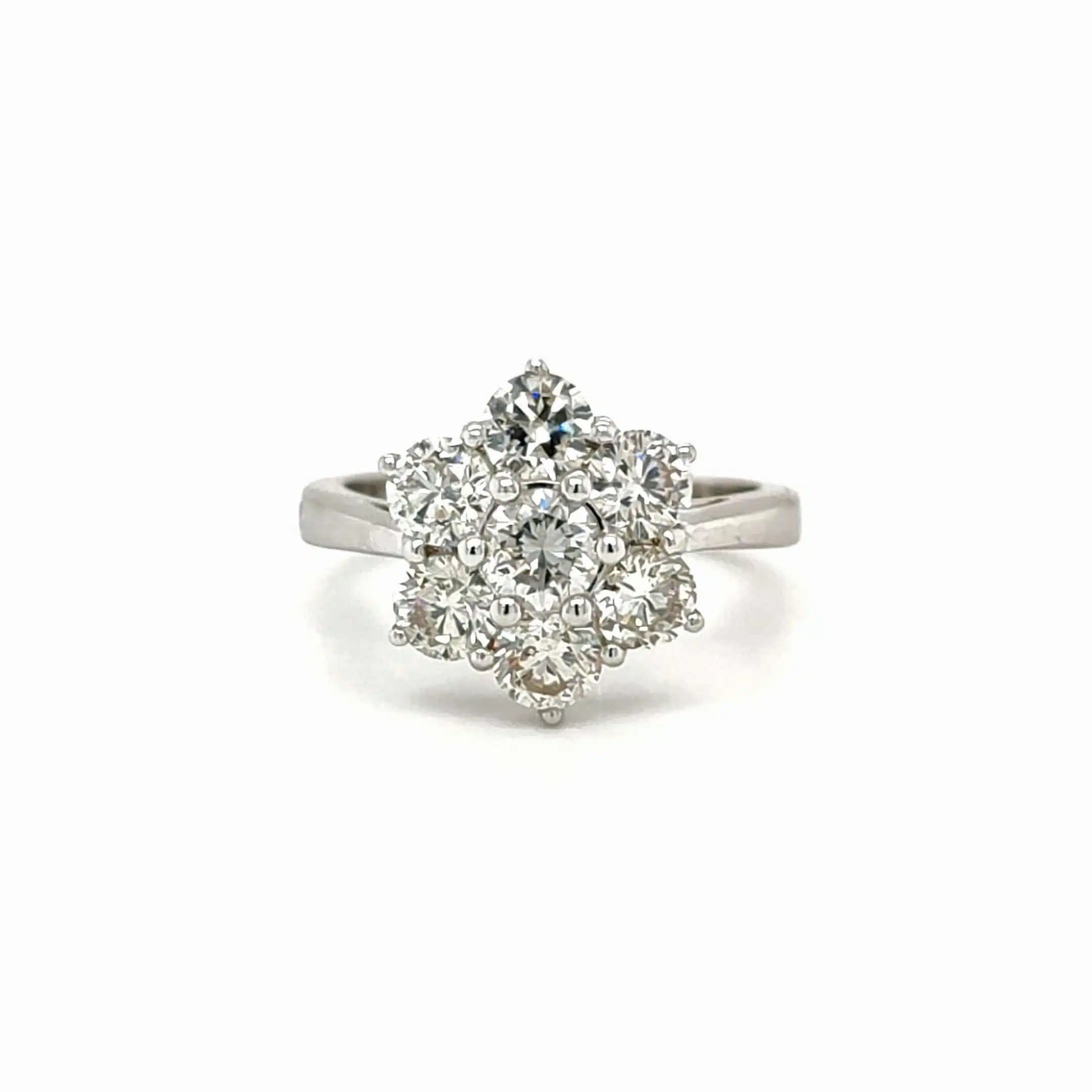 Seven beautiful brilliant cut diamonds have been claw set in this excellent quality and heavy weight daisy cluster mount.