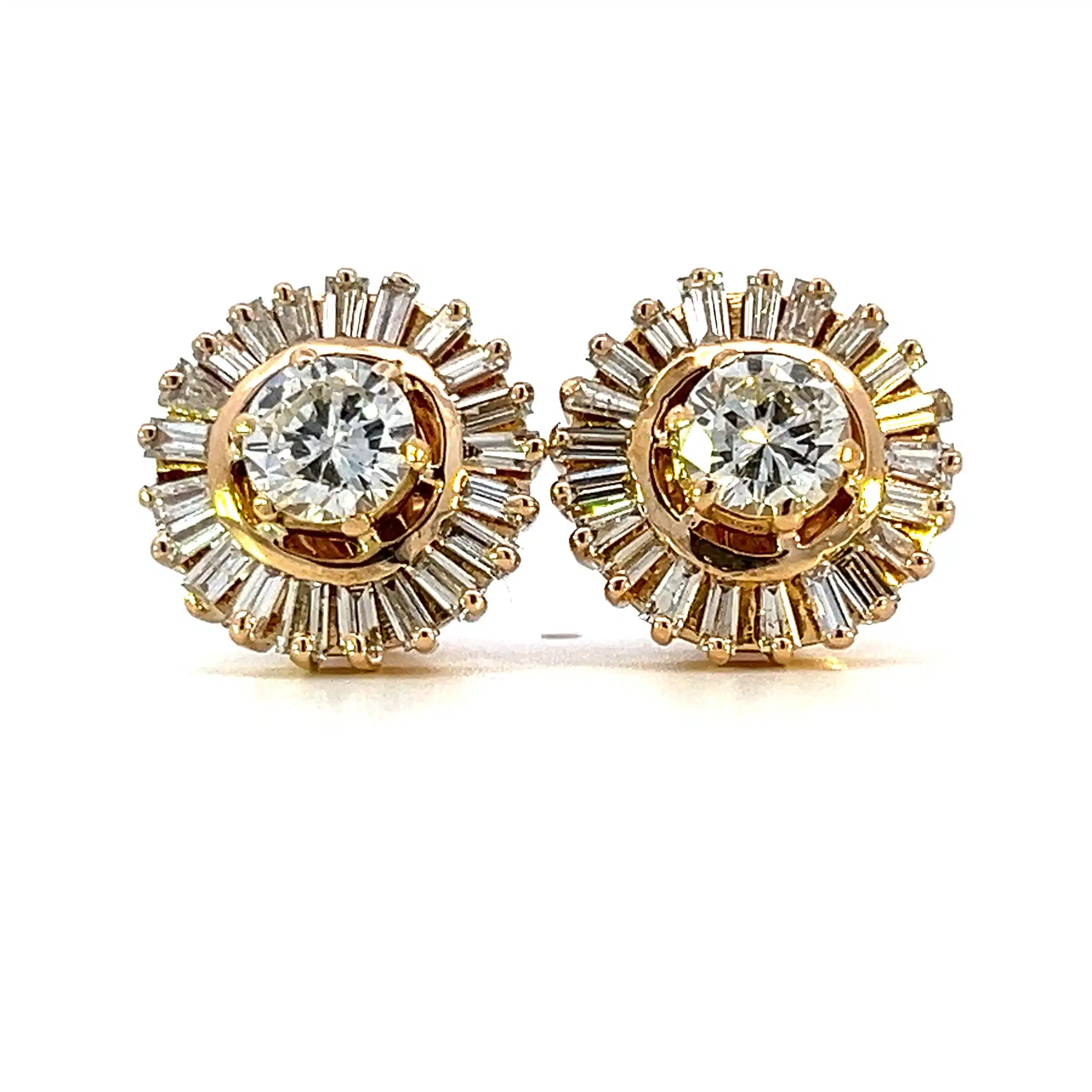 Crafted from luxurious 18ct yellow gold, these pre-owned earrings dazzle with a mix of baguette and brilliant cut diamonds.