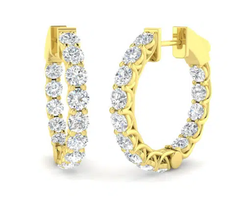 2.96ct Lab Grown Yellow Gold Diamond Hoop Earrings