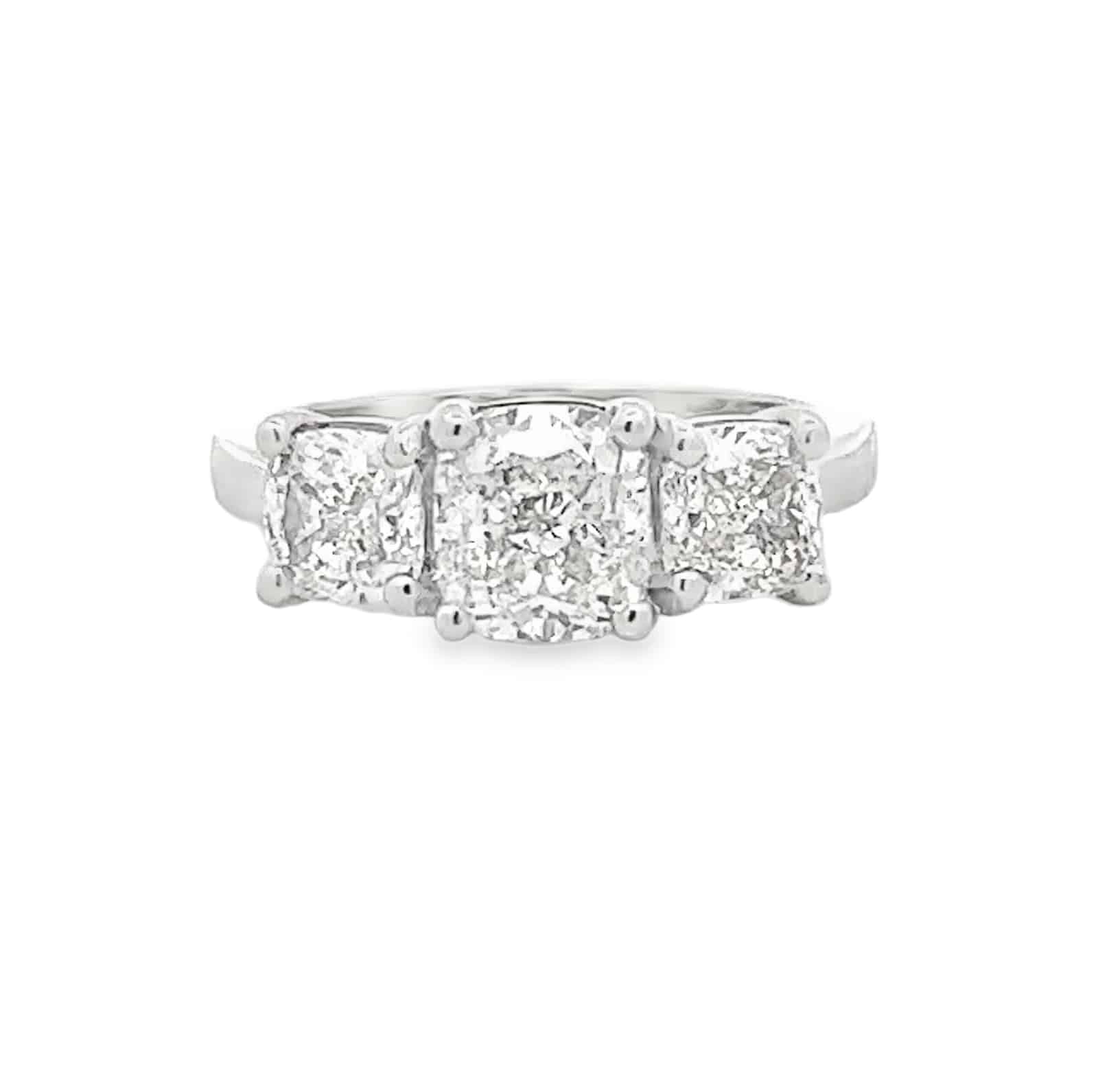 Introducing our 3-Stone Cushion Cut Diamond Ring, a harmonious blend of quality and timeless design.
