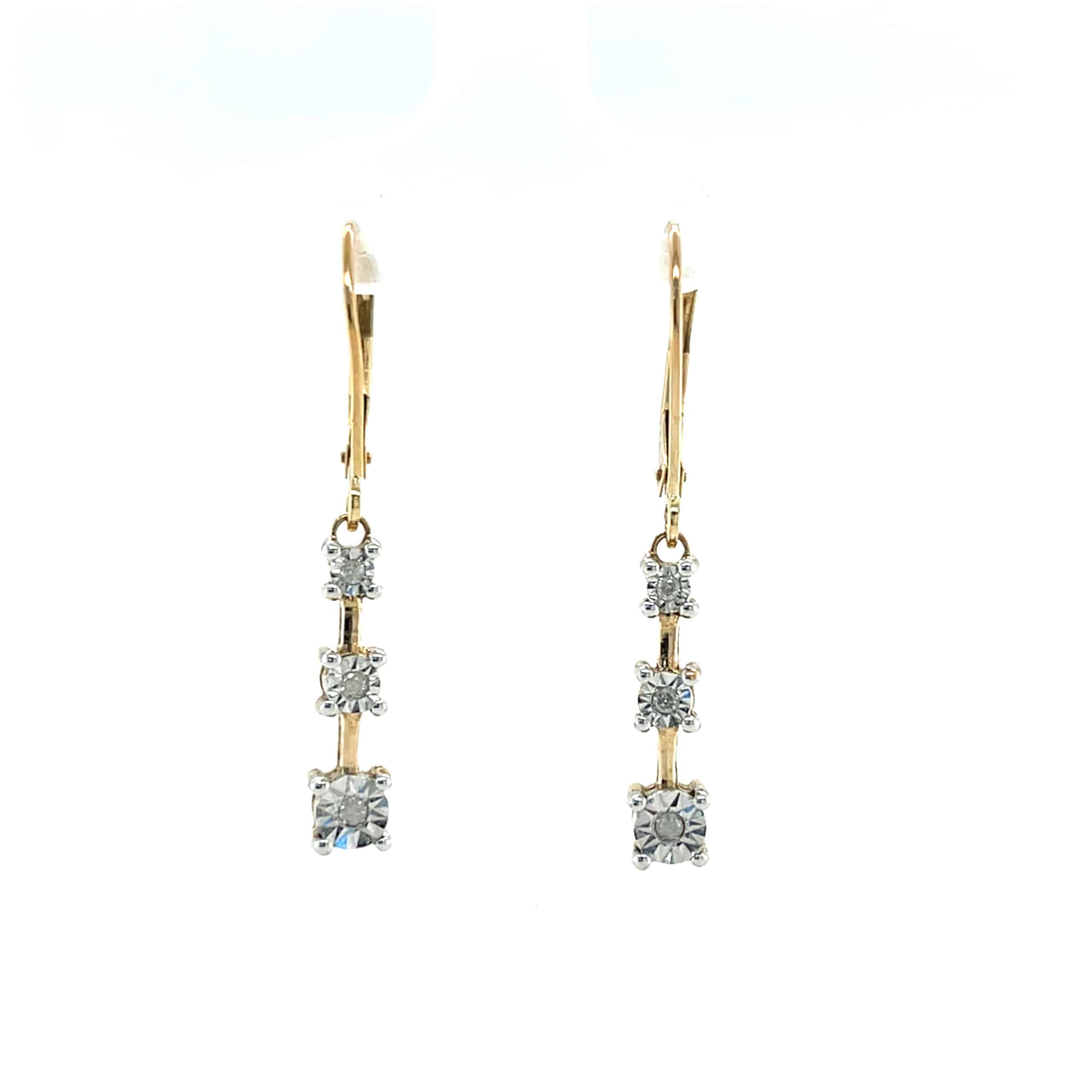 Elevate your elegance with these stunning 9ct Gold Diamond Drop Earrings. Featuring a delicate illusion set of 0.04ct diamonds, these earrings are designed to catch the light beautifully. The hook fastening ensures a secure fit, making them ideal for any occasion. Perfect for adding a touch of sophistication to your jewellery collection.