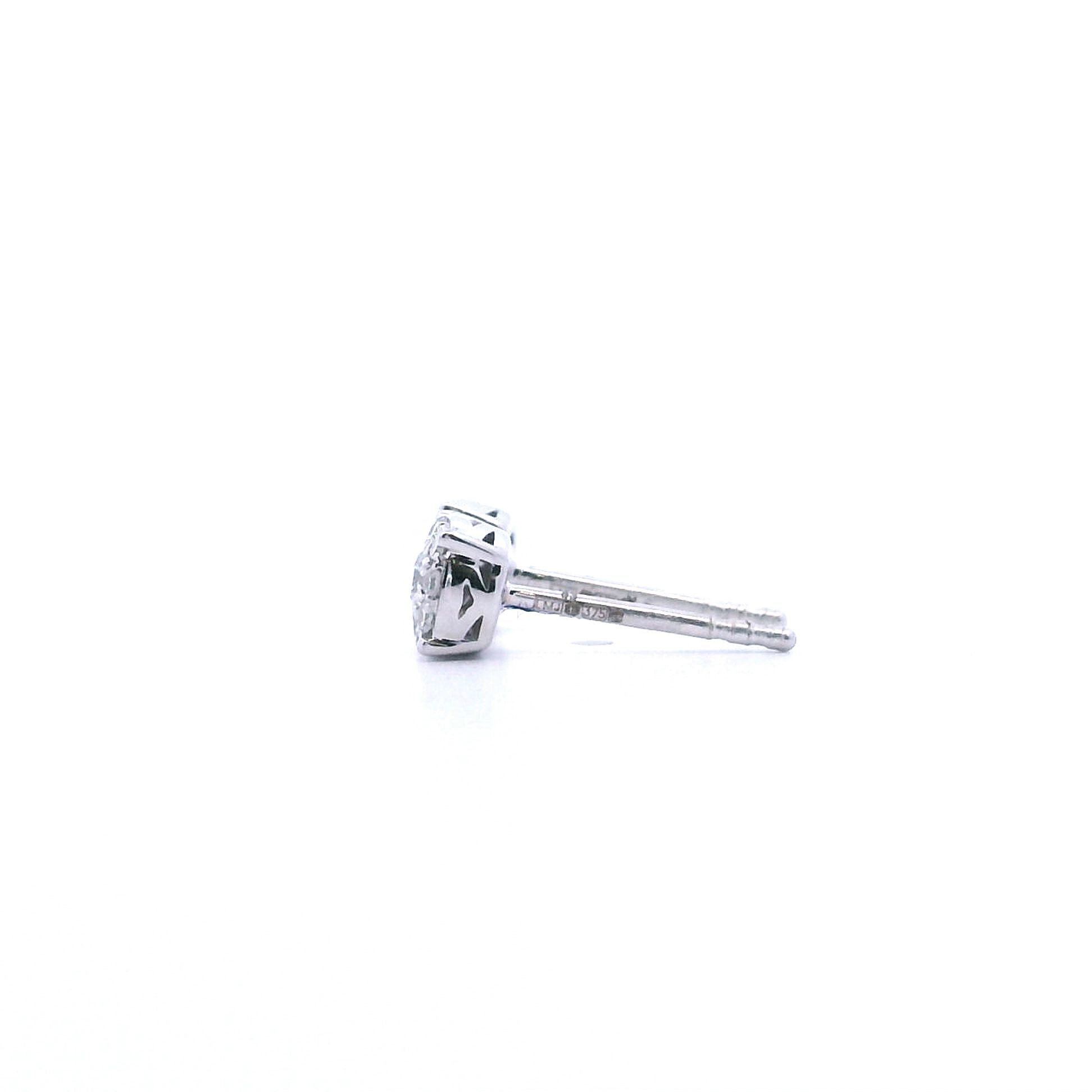 Each earring features a cluster of brilliant-cut diamonds arranged to resemble a single larger diamond, creating a dazzling effect.