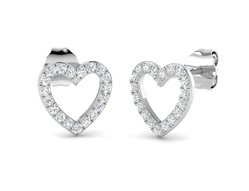 9ct White Gold Diamond Heart Earrings