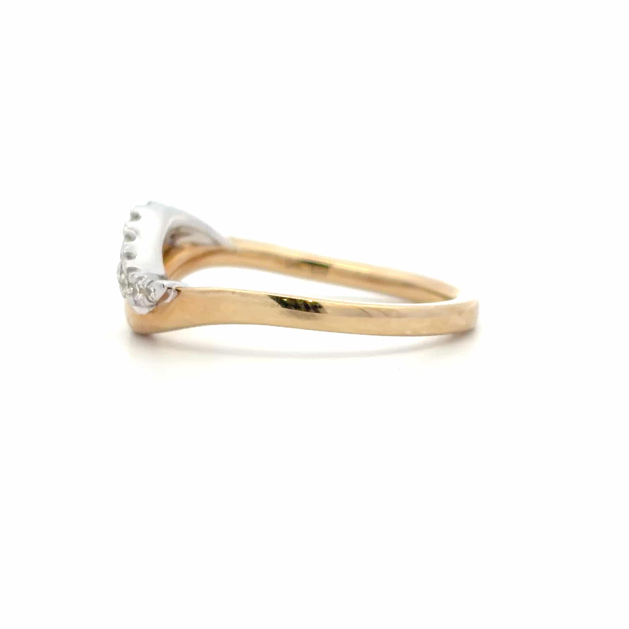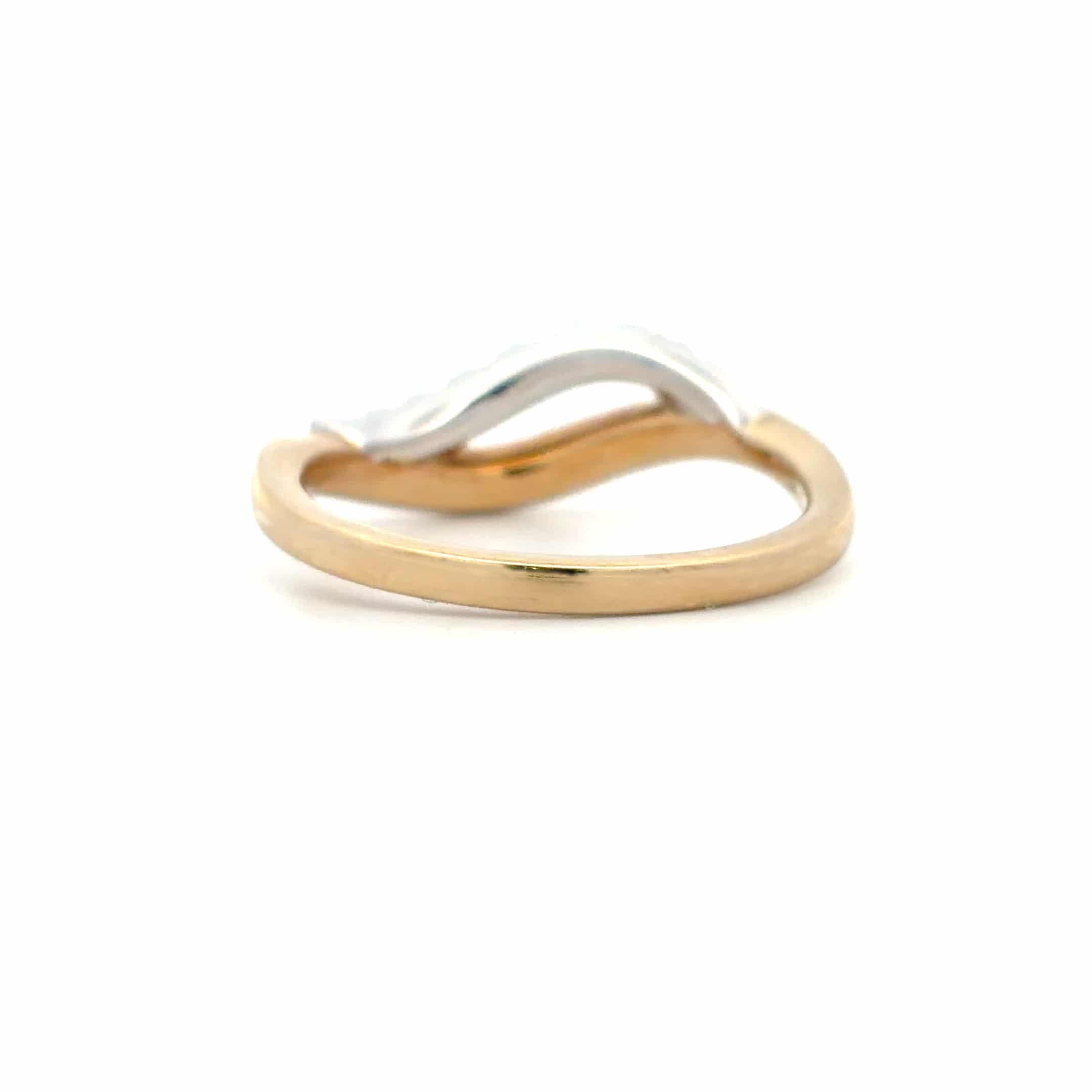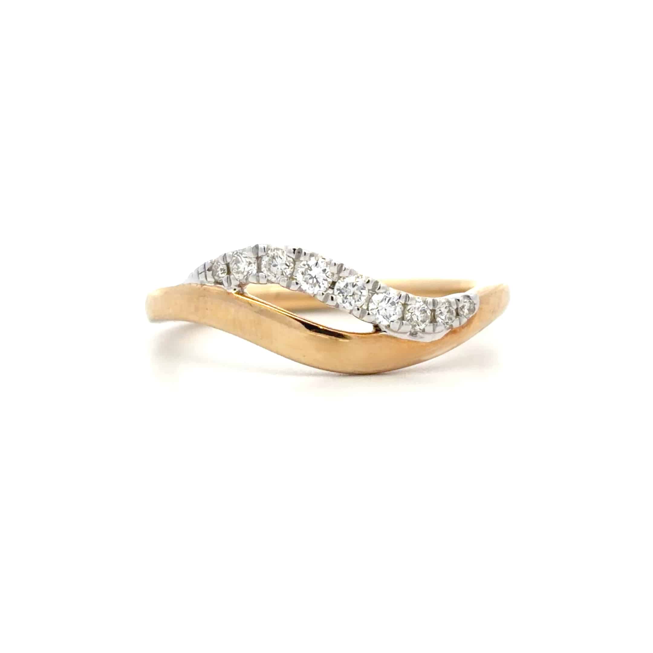 Discover elegance with our 9ct Yellow and White Gold Diamond Ring. This unique piece features a contemporary wave design adorned with 0.16ct of brilliant cut diamonds, beautifully set in 9ct white gold and complemented by a lustrous yellow gold shank. Perfect for any occasion, this ring is a stunning addition to your collection.