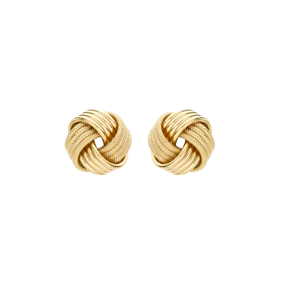 9ct Yellow Gold 11mm Half and Half Polished and Textured Knot Stud Earrings.