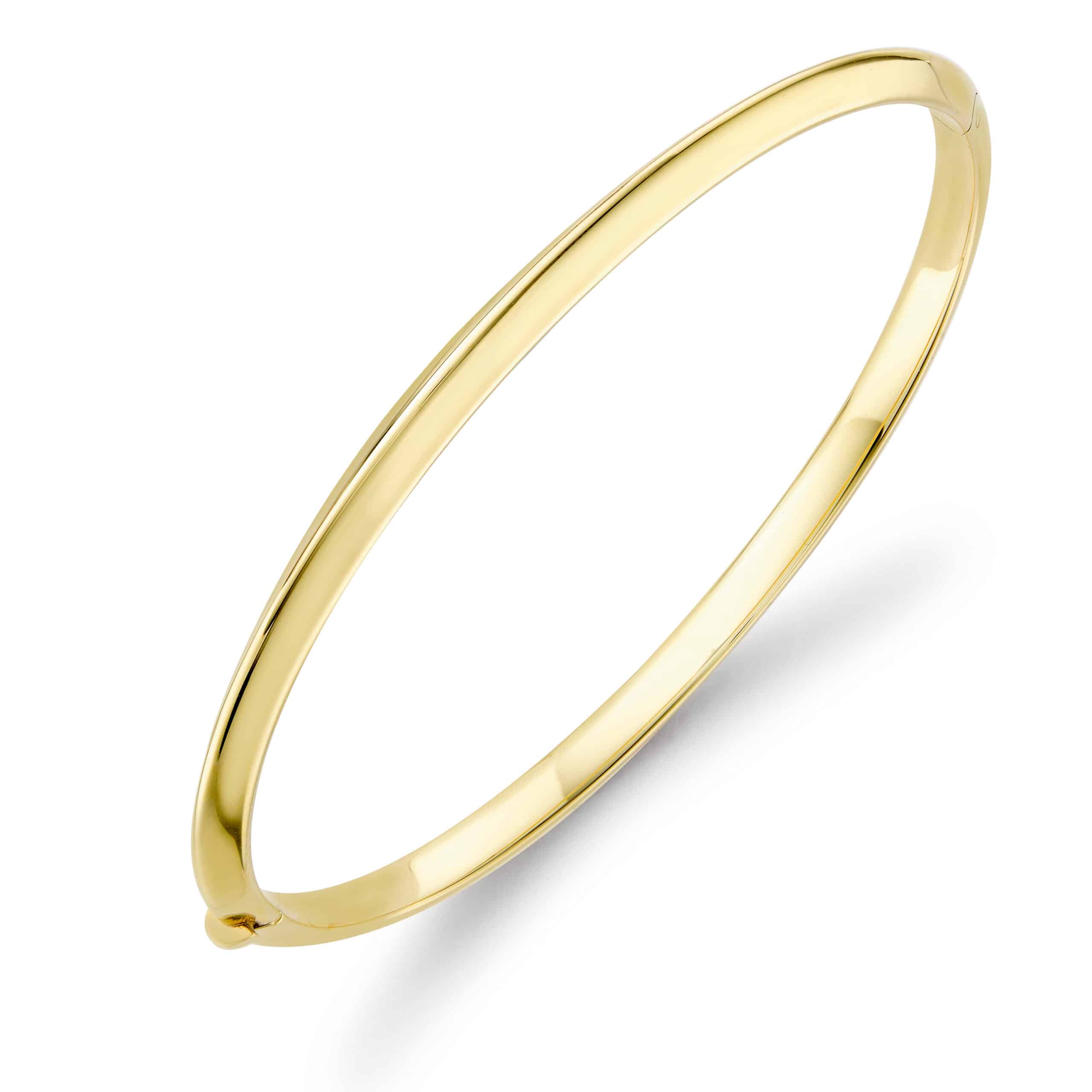 A classic design that remains eternally fashionable, this 9ct hinged yellow gold bangle features a knife edge design with a tongue and groove clasp.