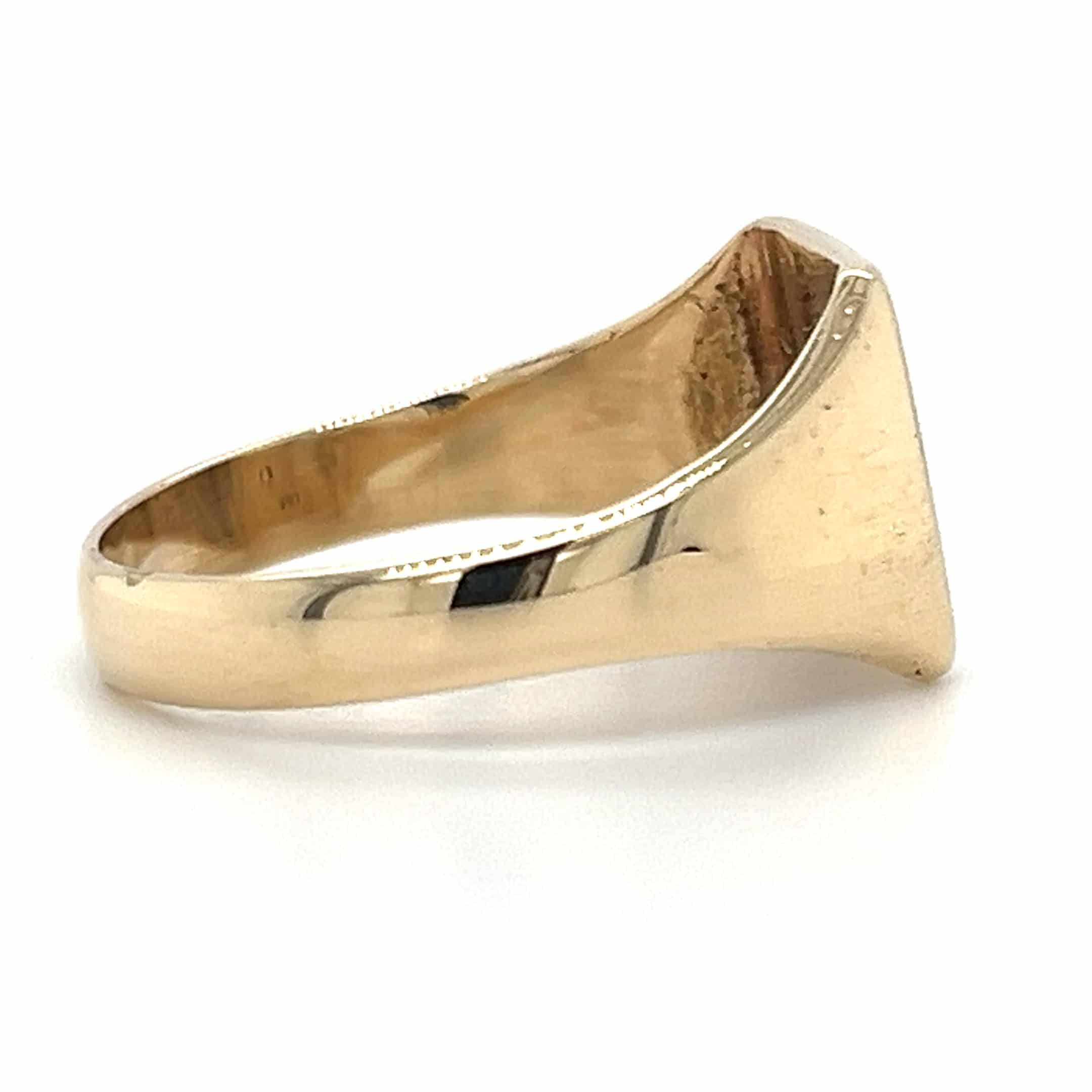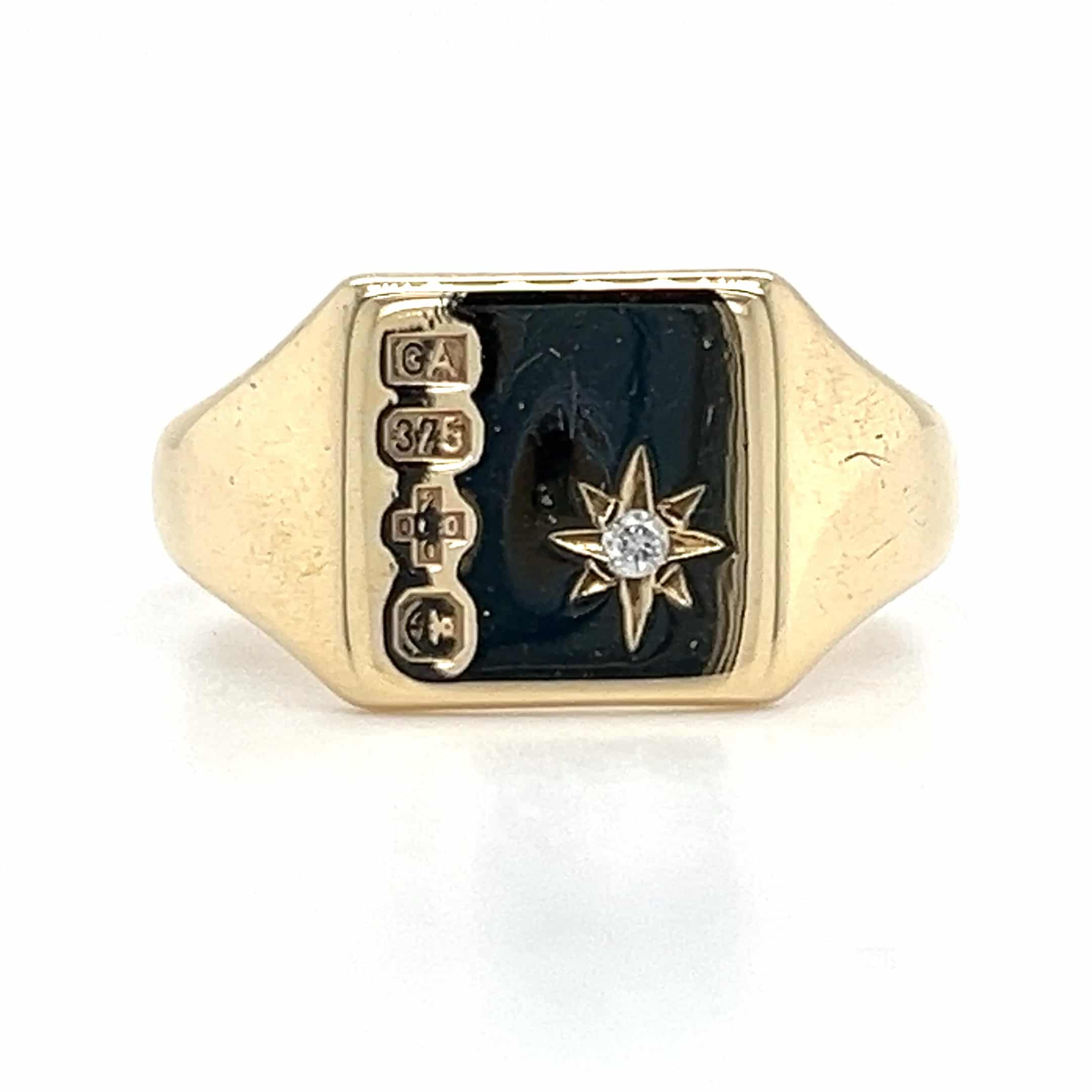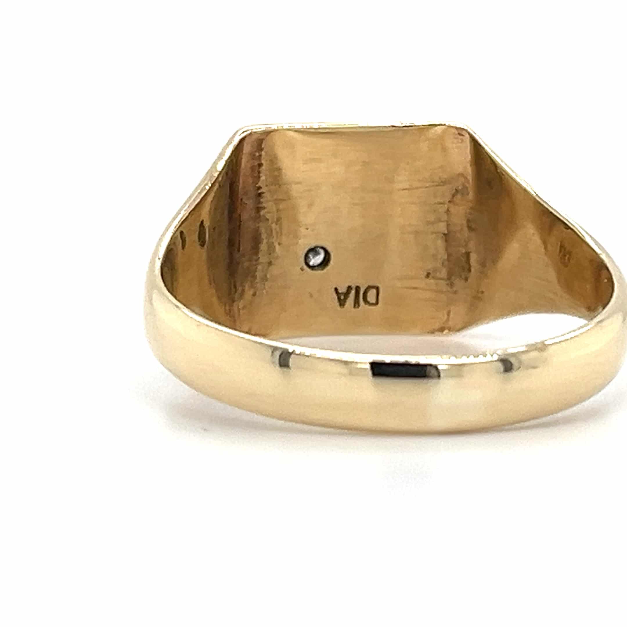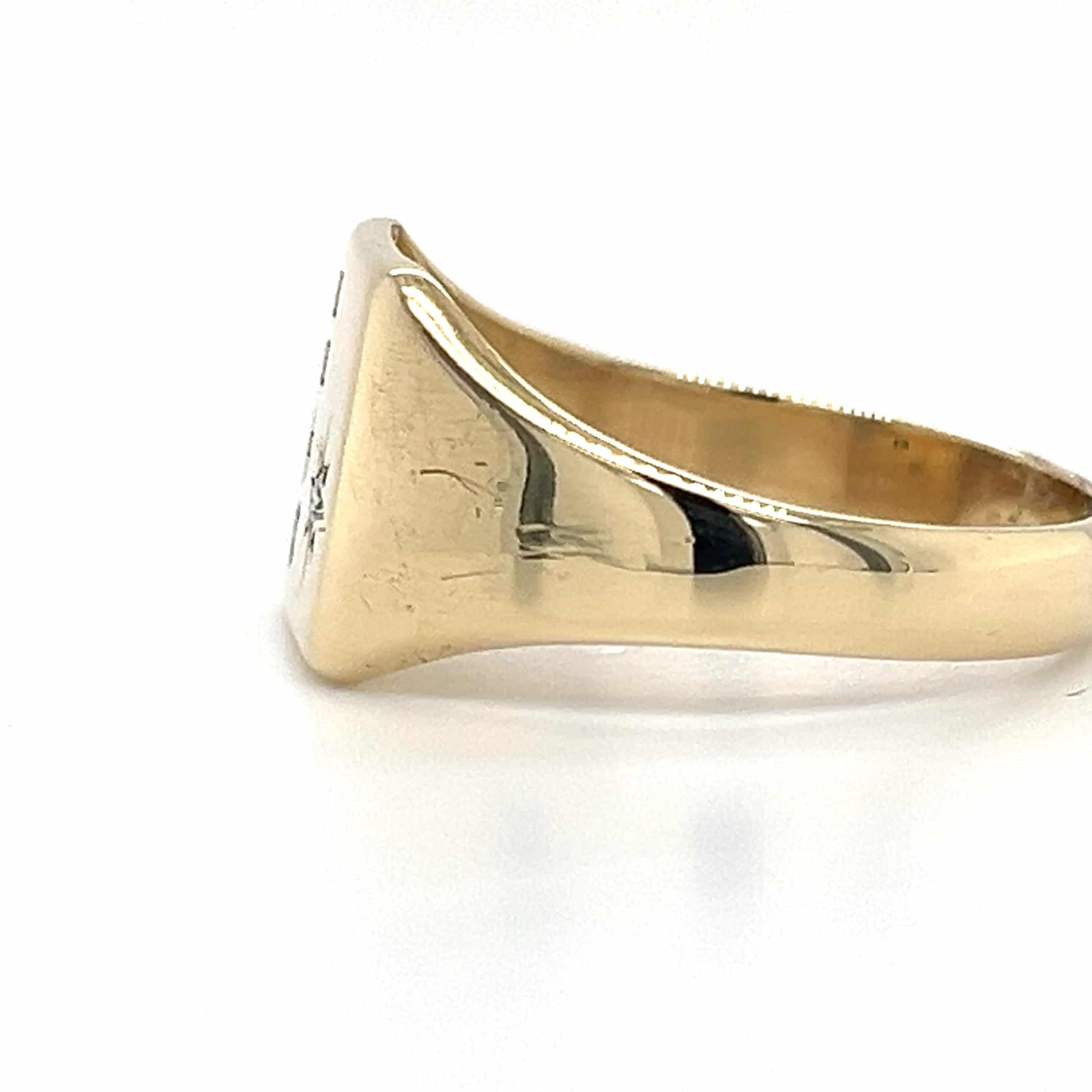 Make a statement with our 9ct yellow gold millennium stamp diamond signet ring, designed for the modern man. This exquisite piece combines elegance with individuality, featuring a stunning diamond that adds a touch of luxury. Perfect for special occasions or as a stylish everyday accessory.