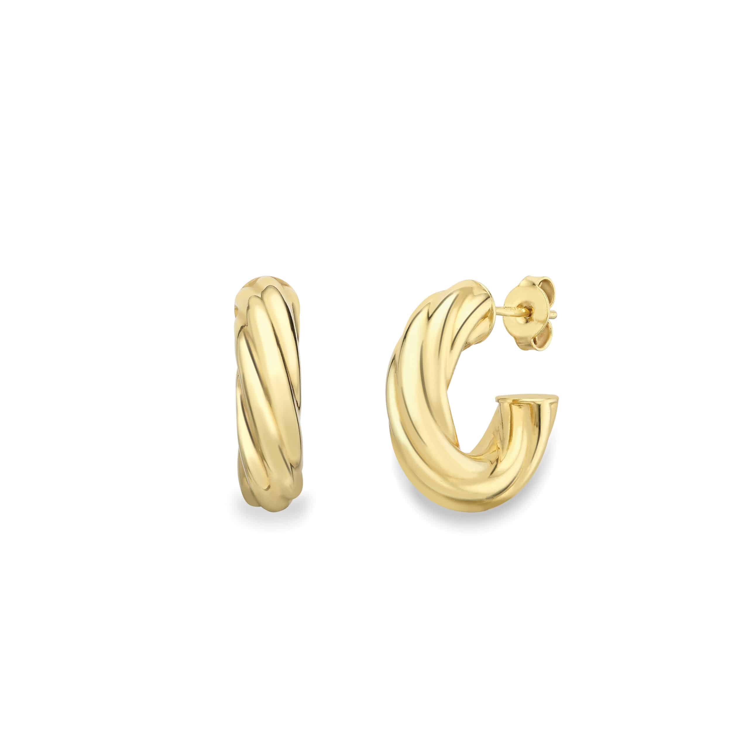 9ct Yellow Gold Twisted Tube Half Hoop Earrings
