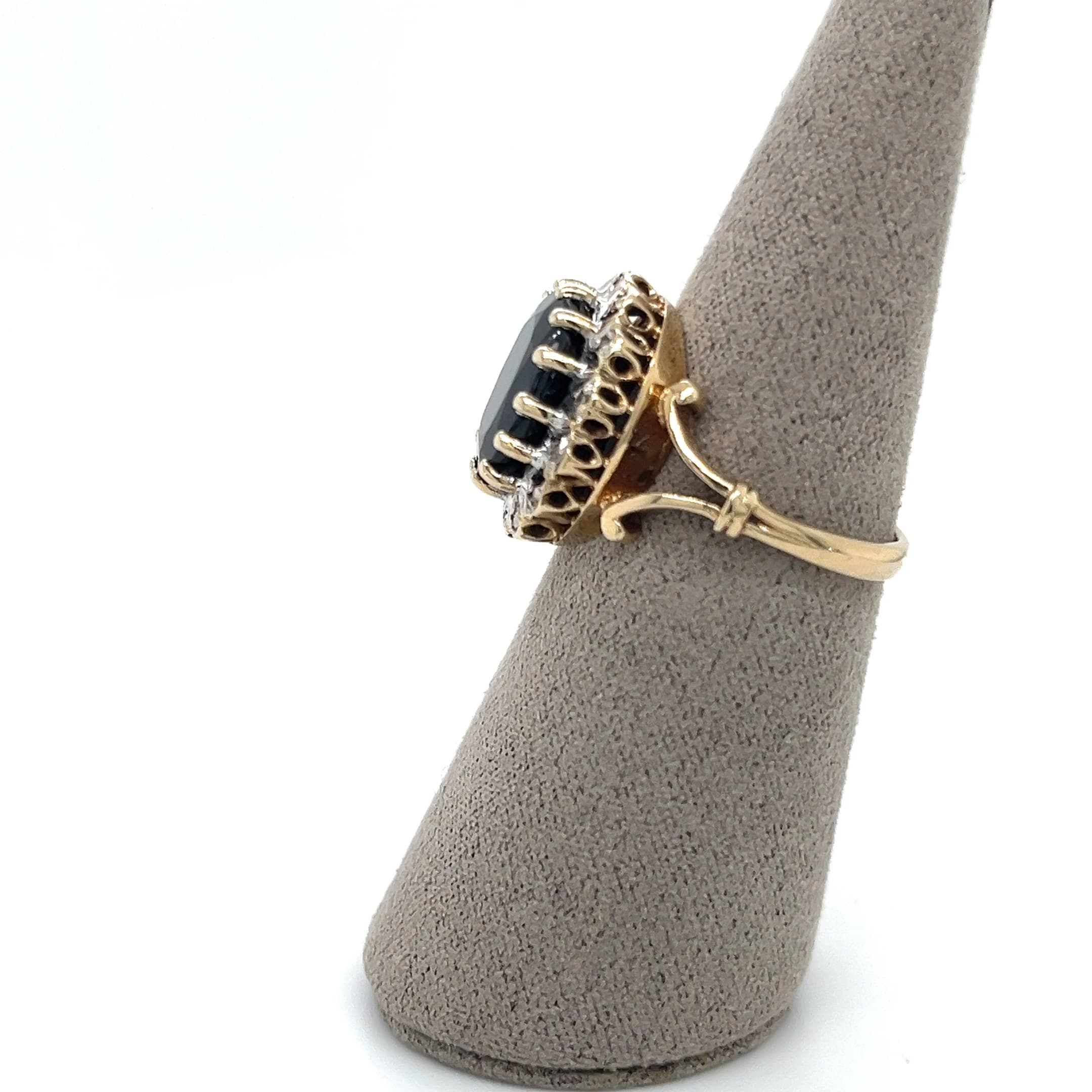 9ct Yellow & White Gold Sapphire & Diamond Halo Ring