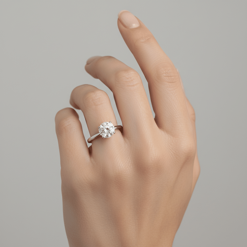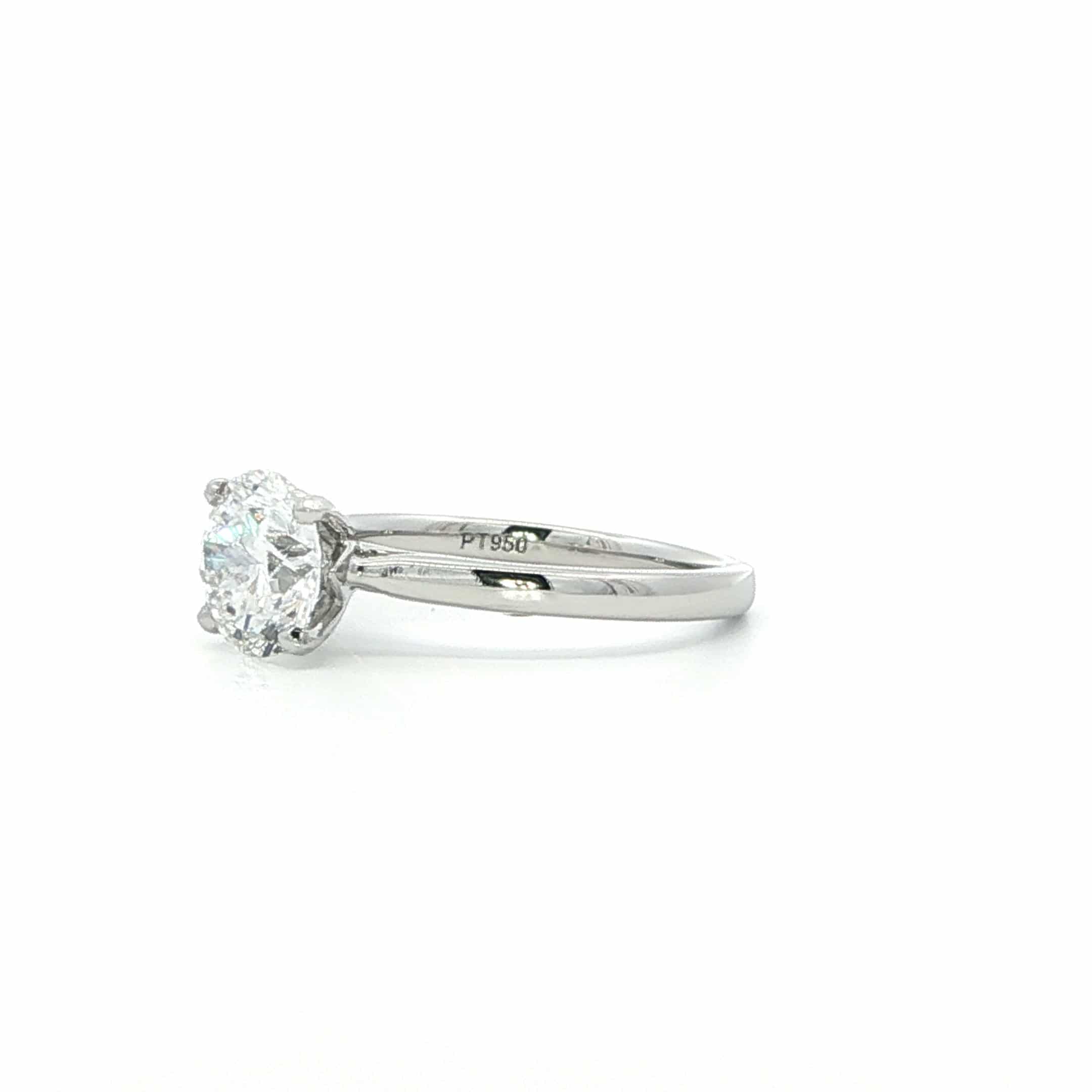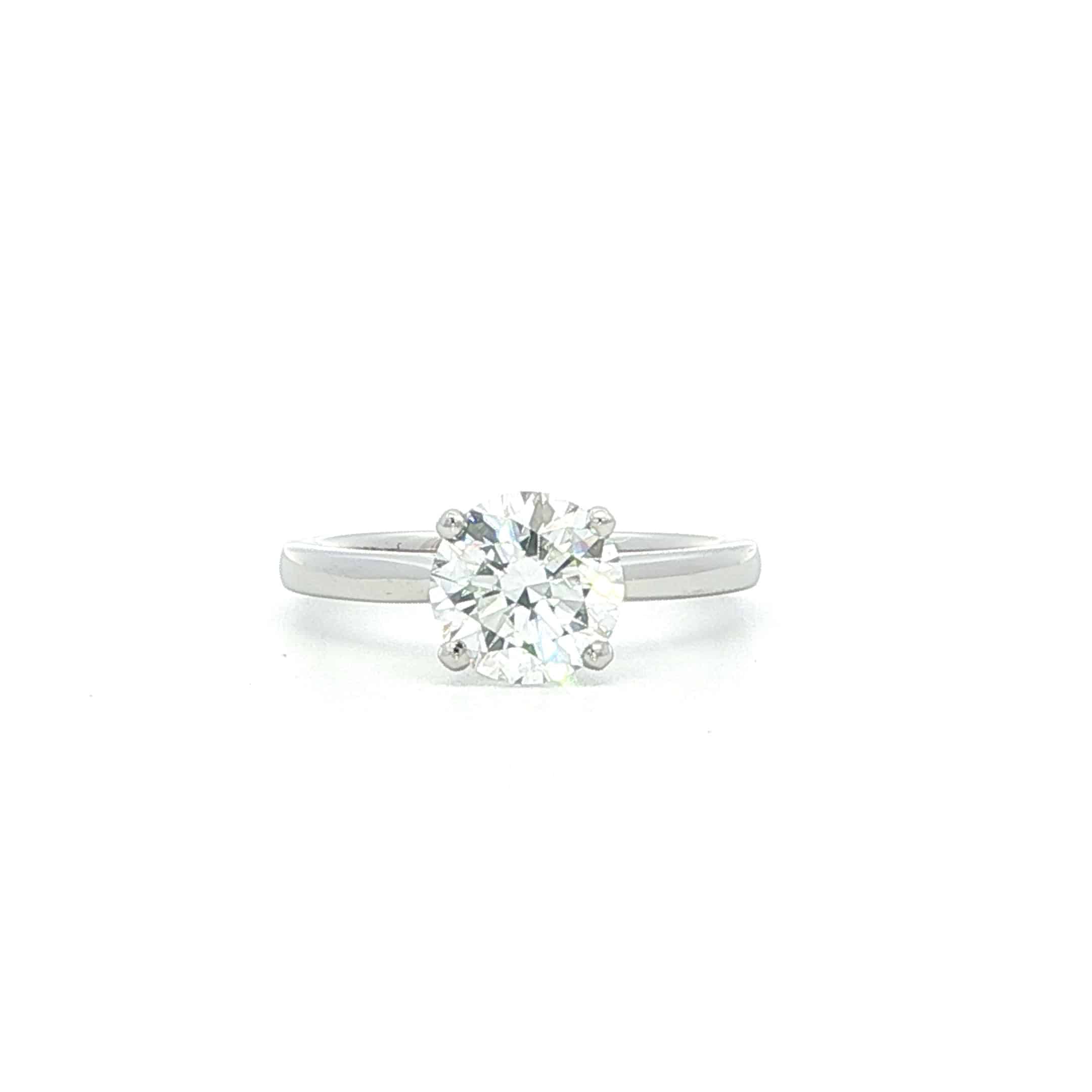 A beautifully crafted platinum solitaire ring showcasing a 1.73ct lab-grown brilliant cut diamond, graded D colour, VS1 clarity with an Excellent cut for exceptional sparkle.