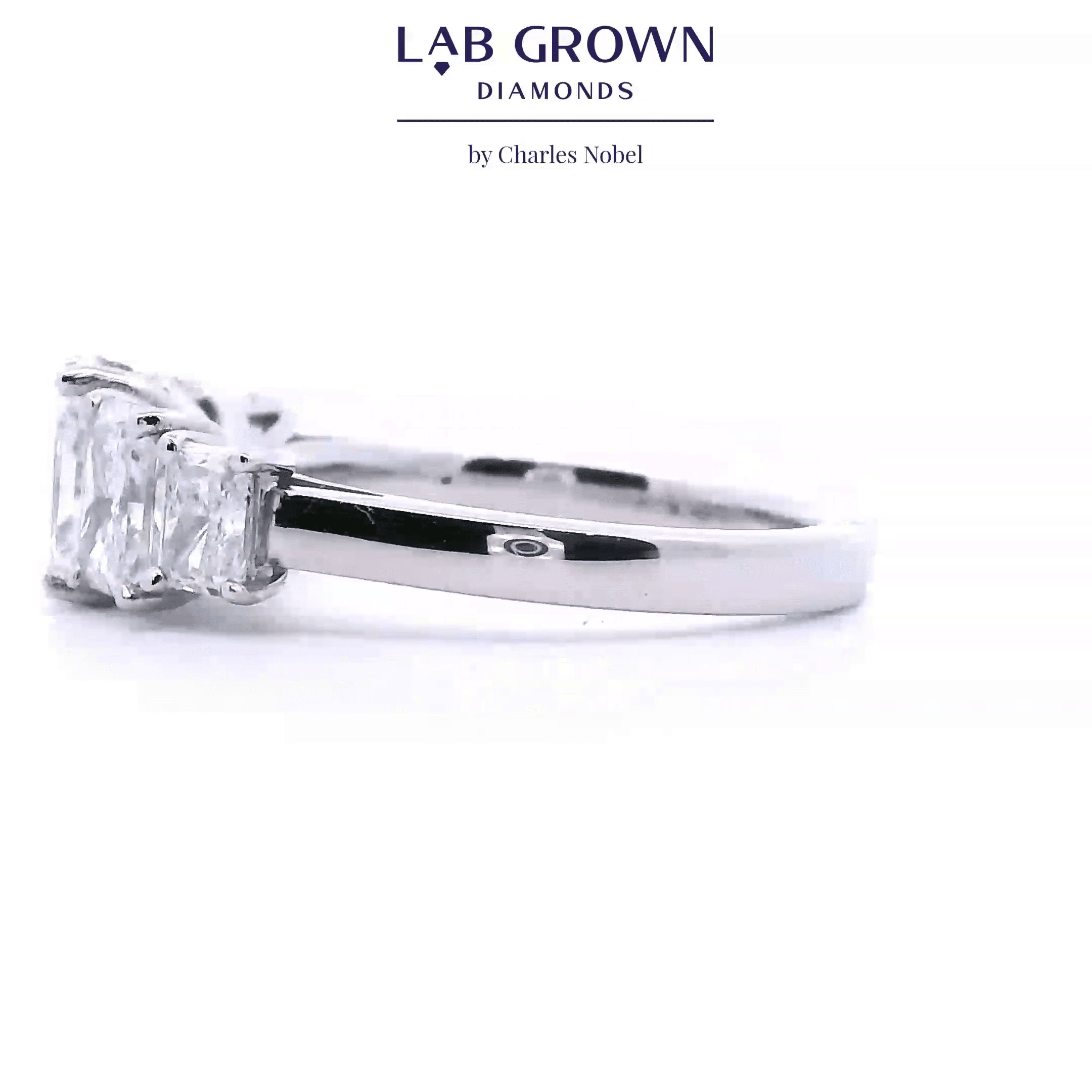 Experience the luxury of sustainability with this platinum 2.74ct multi-stone radiant cut lab-grown diamond ring.