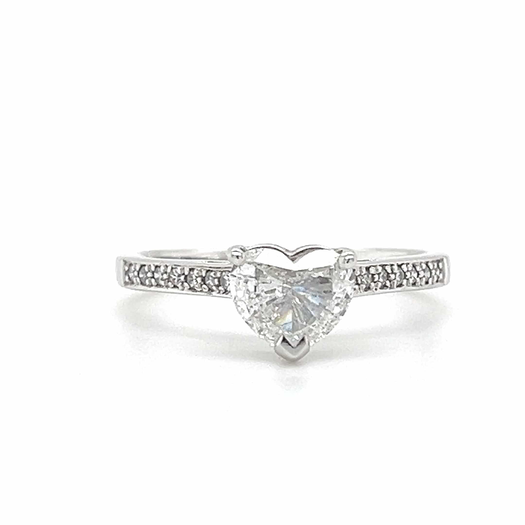 Discover the charm of this preowned 18ct White Gold heart-shaped diamond solitaire ring, designed to make every occasion memorable.