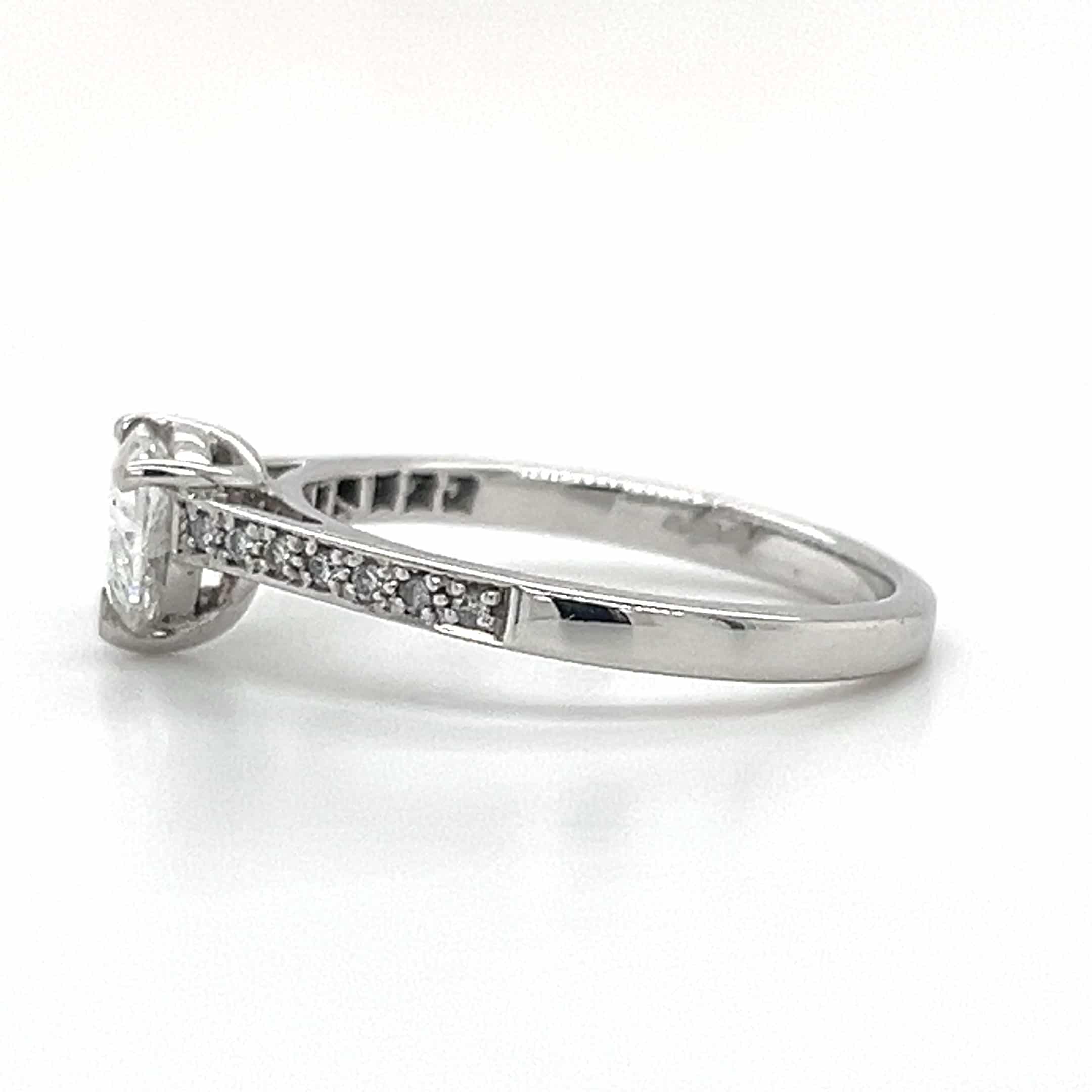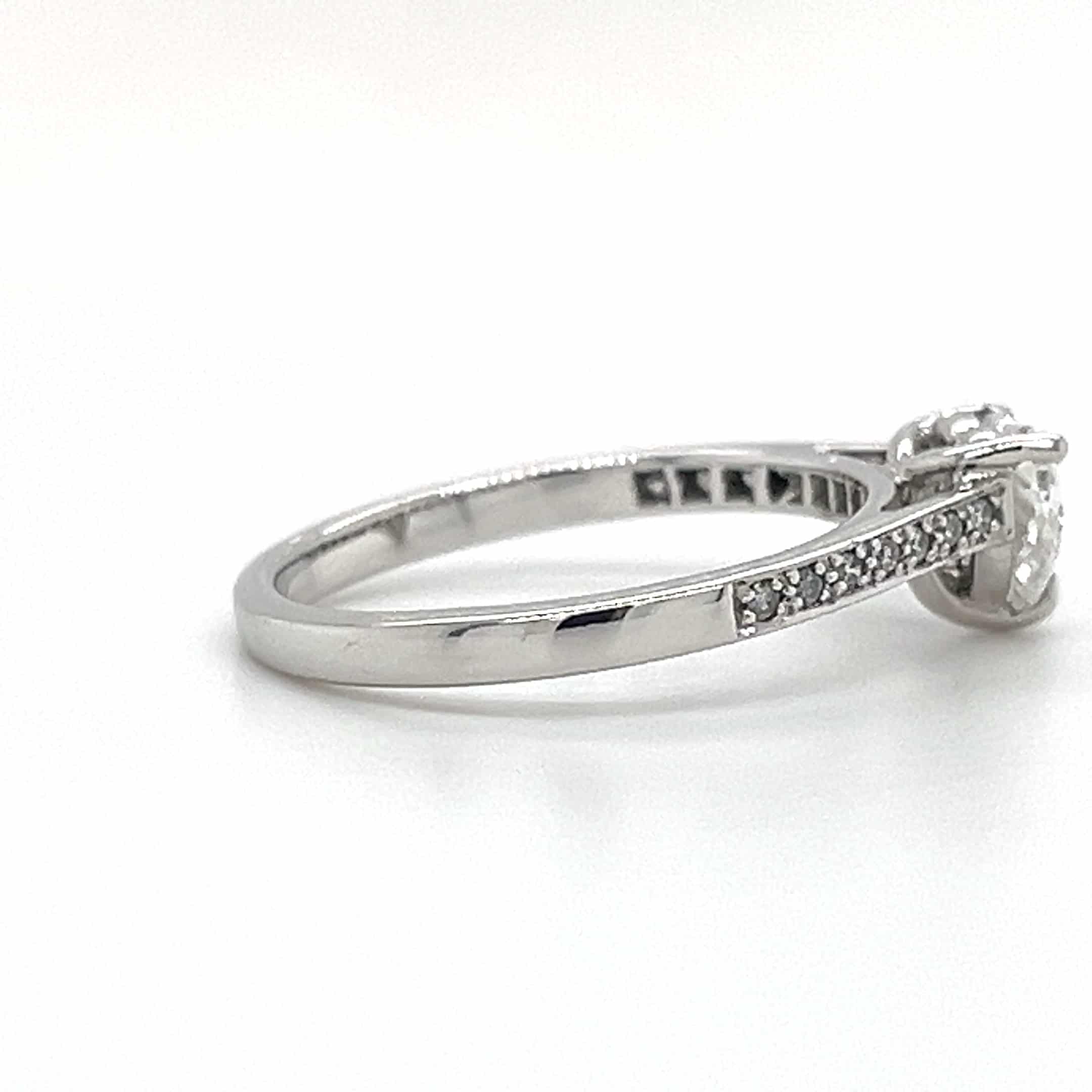This stunning preowned 18ct White Gold heart-shaped diamond solitaire ring features exquisite diamond-set shoulders, making it the perfect choice for an engagement, anniversary, or a statement dress ring. With a total diamond weight of 0.51ct, it embodies elegance and timeless beauty. A truly special piece for unforgettable moments.