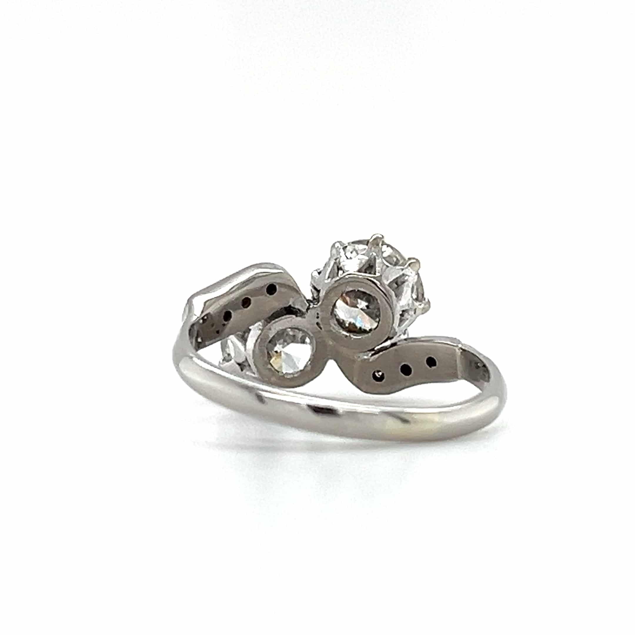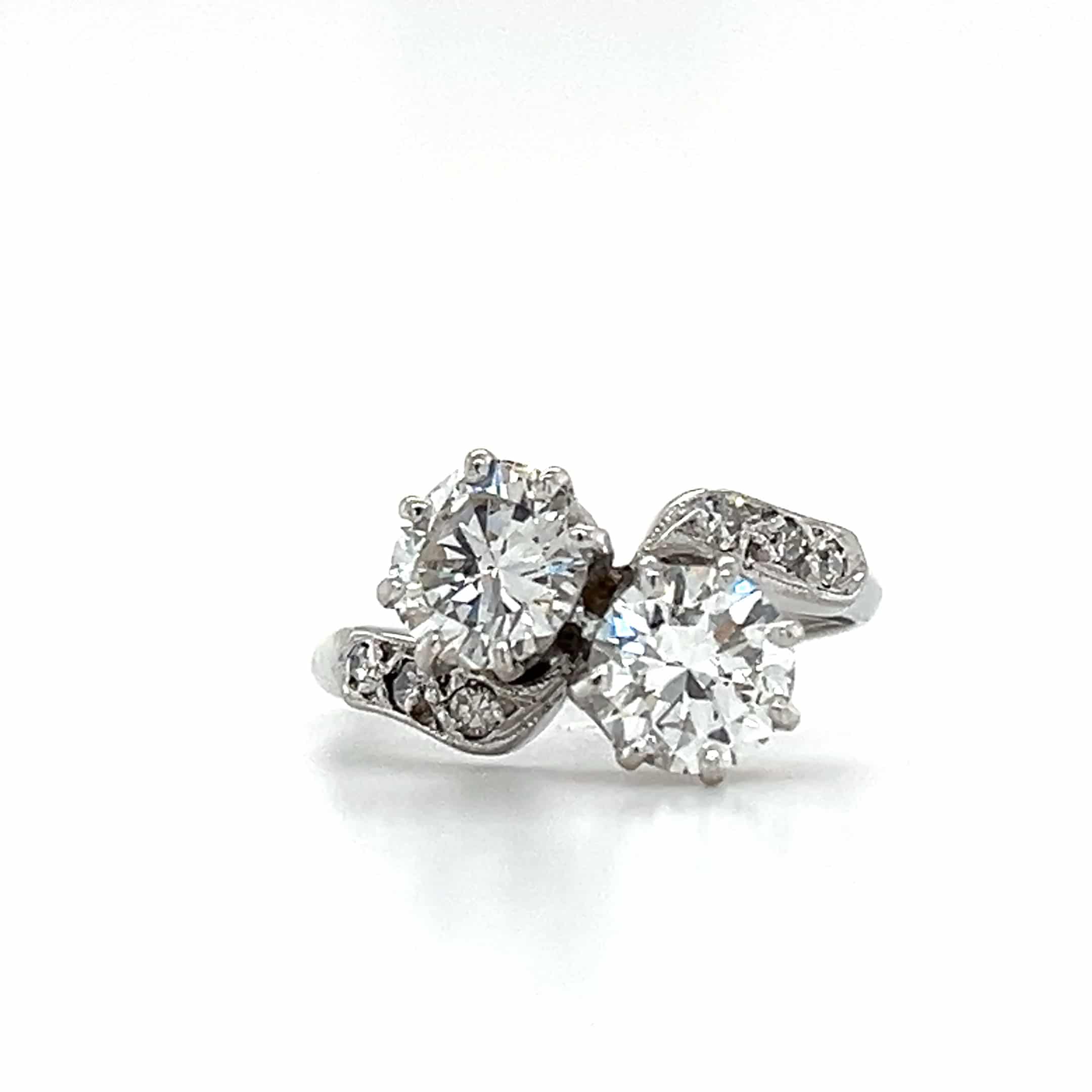 Discover timeless elegance with this preowned platinum crossover ring featuring two stunning 1.70ct diamonds and exquisite diamond shoulders. Perfect for anniversaries, engagements, or as a statement piece, this vintage-style ring combines classic charm with modern sophistication, making it a cherished addition to any jewellery collection.