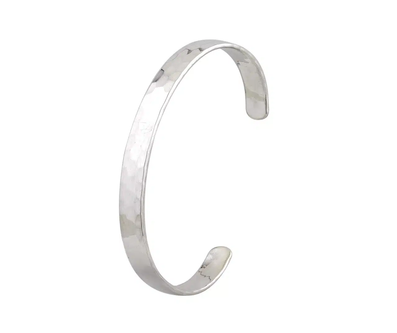 Solid silver polished hammered torque bangle, perfect for everyday wear and will compliment all outfits.