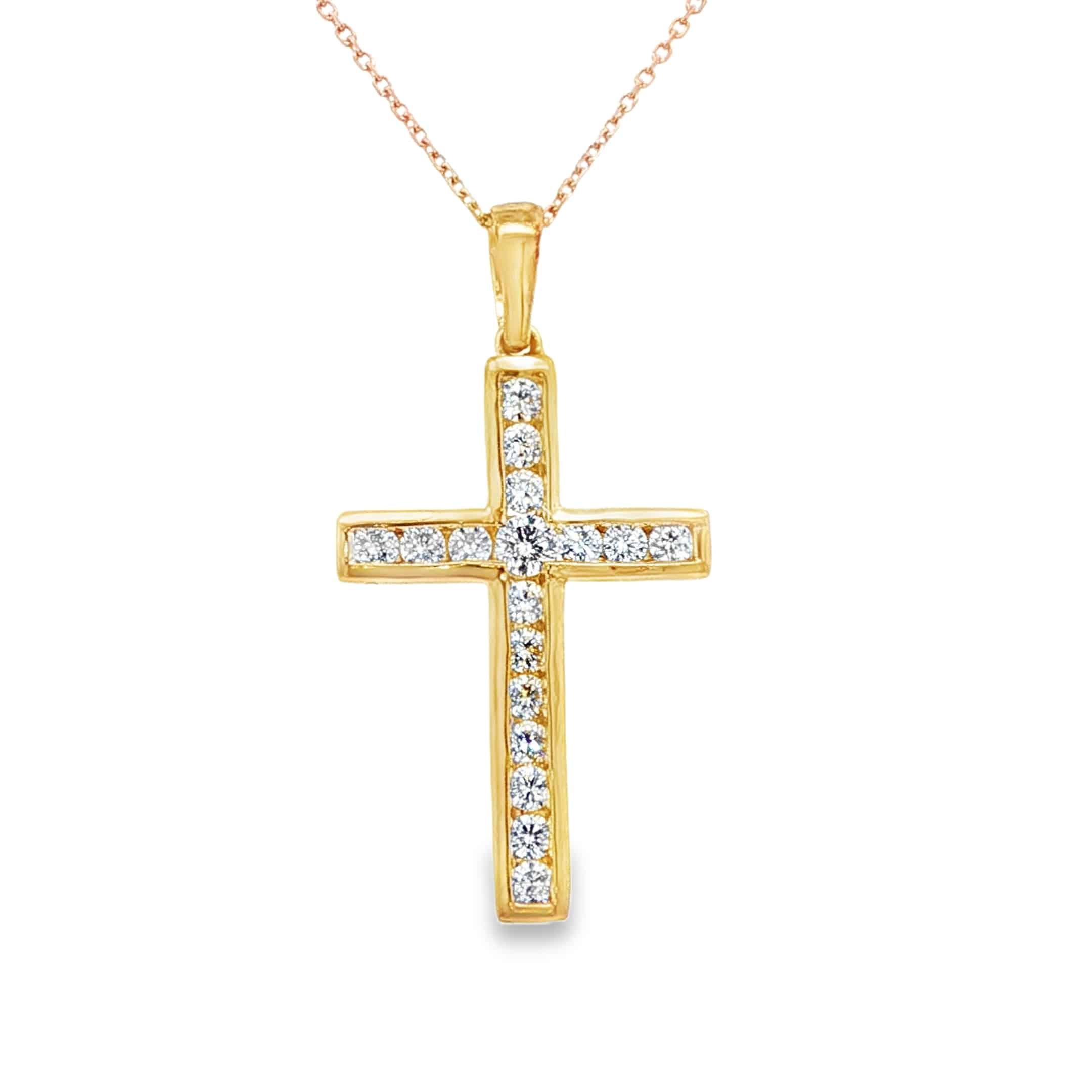 Yellow Gold 0.49ct Lab Grown Diamond Channel Set Cross Pendant